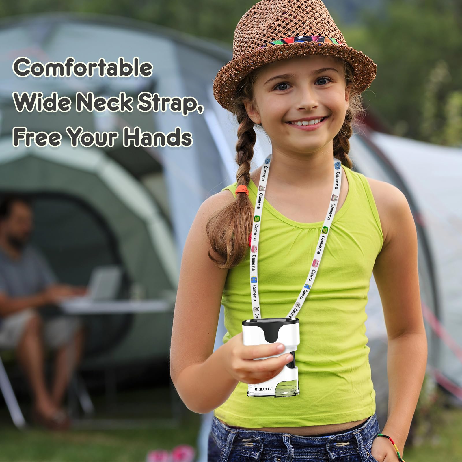 - This portable microscope for kids is not only lightweight at just 200g and compact with dimensions of 82x51x104mm, making it easy to fit in pockets or bags, but it also features a thickened neck strap for enhanced comfort during wear. This allows for hands-free usage while on the move, perfect for young explorers.