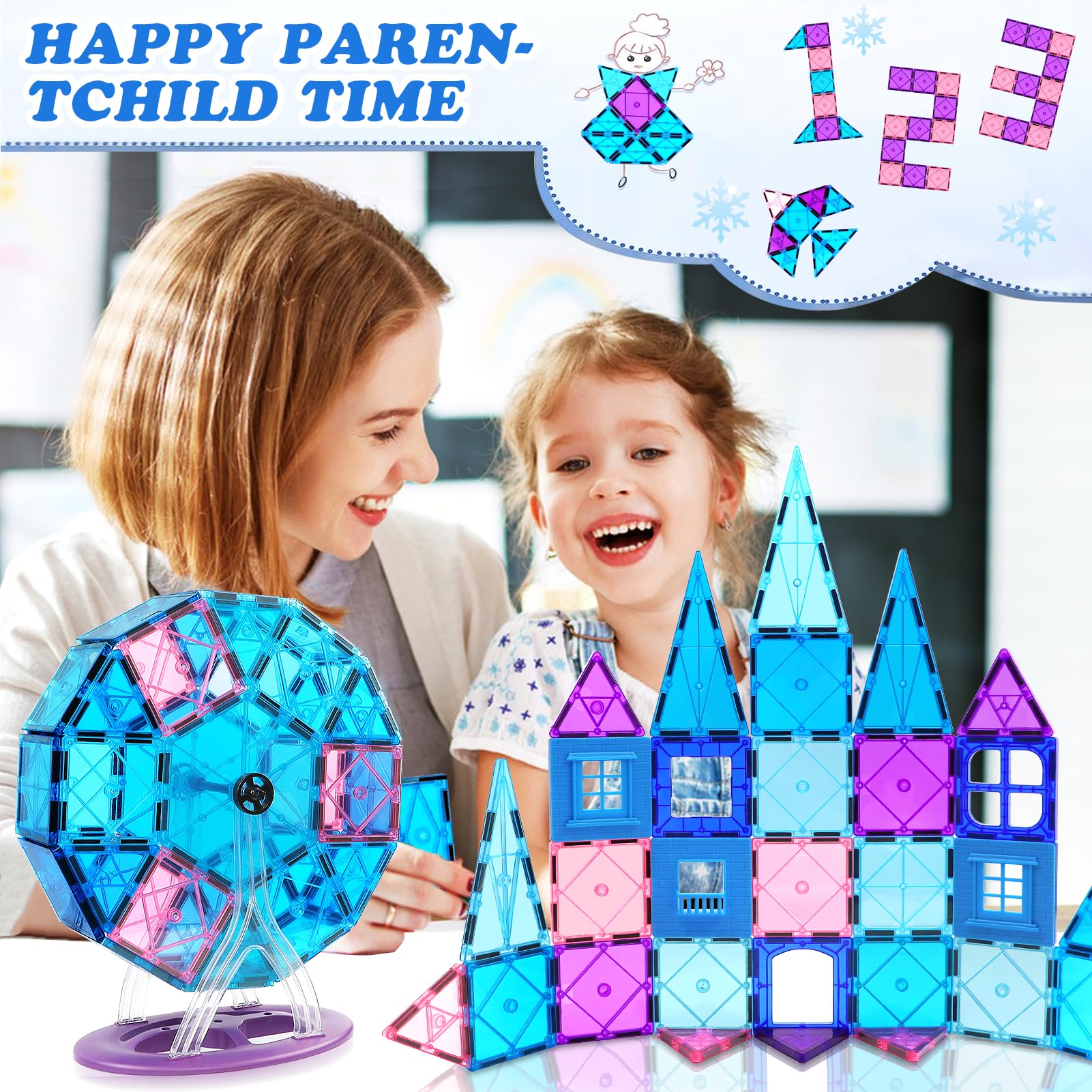 - STEM Learning & Creative Play - Inspire young architects with these 3D magnetic tiles designed as STEM toys for 3+ year olds. Children explore geometry, spatial reasoning, and problem-solving through hands-on building—from simple towers to complex castles. The vivid blue hues enhance colour recognition, while compatibility with major brands (e.g., Magna-Tiles) extends play possibilities. Ideal for classroom activities or Montessori-inspired learning to support STEM learning and fine motor skills 2. Prioritise Safety & Durable Design