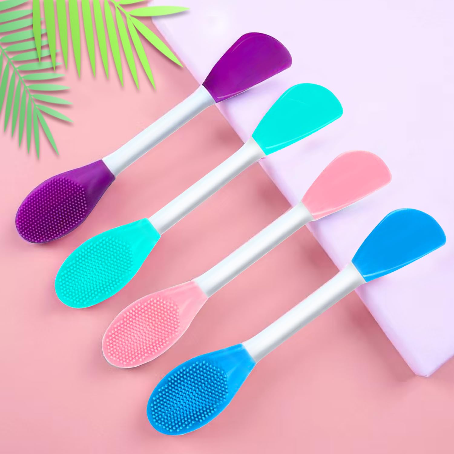 - Facial Applicator Brush: Double-Ended silicone brush, one curved side can work as flexible silicone face spatula to apply different face product. The other side as a exfoliation brush.Suitable for home, beauty salon and traveling use. All brushes are comfortable to use and dry