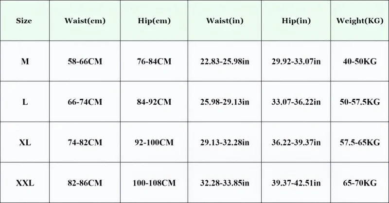size_info: {"sizeInfoList":[{"length":{"cm":"58-66","inch":"22.83-25.98"},"size":"M","vid":-1},{"length":{"cm":"66-74","inch":"25.98-29.13"},"size":"L","vid":-2},{"length":{"cm":"74-82","inch":"29.13-32.28"},"size":"XL","vid":-3},{"length":{"cm":"82-86","inch":"32.28-33.86"},"size":"XXL","vid":-4}]}