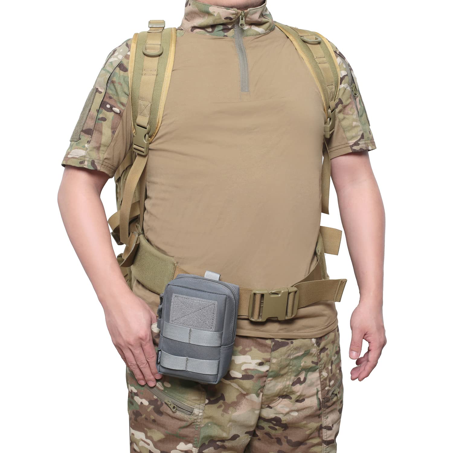 - The two vertical straps and the the metal snap on the back allow you to add the military pouch to combat vest, tactical backpack, or other tactical gears as an extra exterior pouch. Small bag is with large capacity and there is an internal pocket. This versatile pouch adds a lot of storage for small items that would have been buried in your main pack.