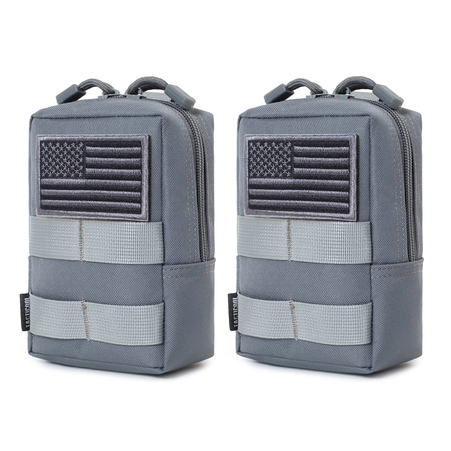 - One item includes two tactical pouches and two US flag patches. Molle pouch size: 6.1'L x 4.5'W x 2.2'T. The outside of the pouch is made of durable 1000D nylon for long time use. The inside of the pouch is made of water-resistant coating to prevent your items getting wet in damp environment.