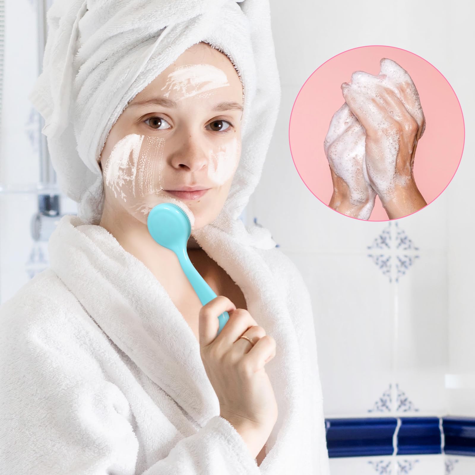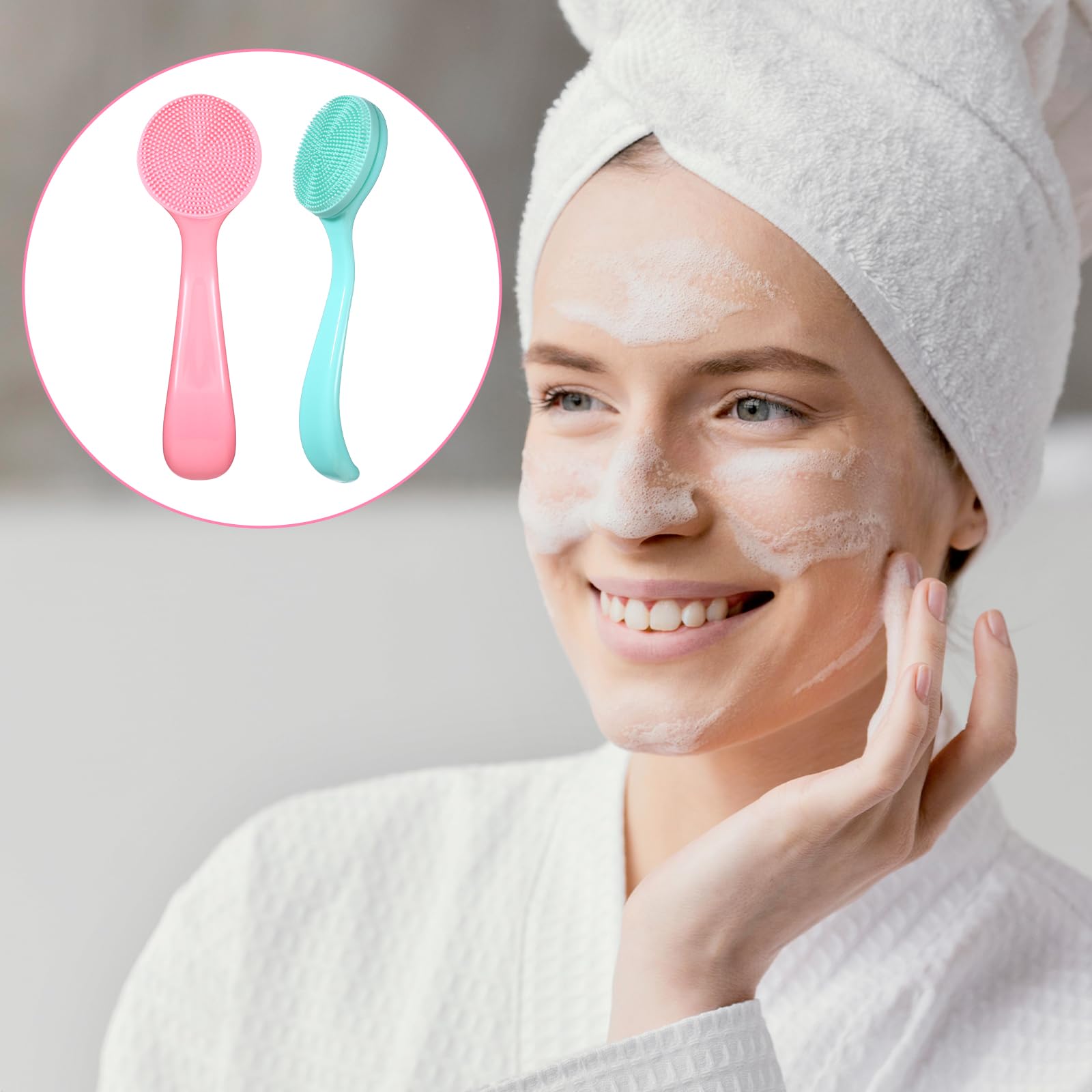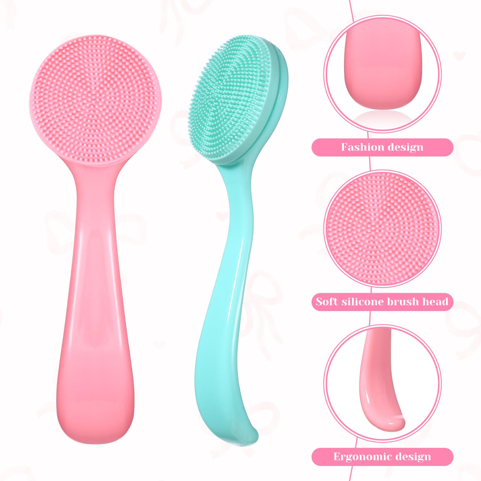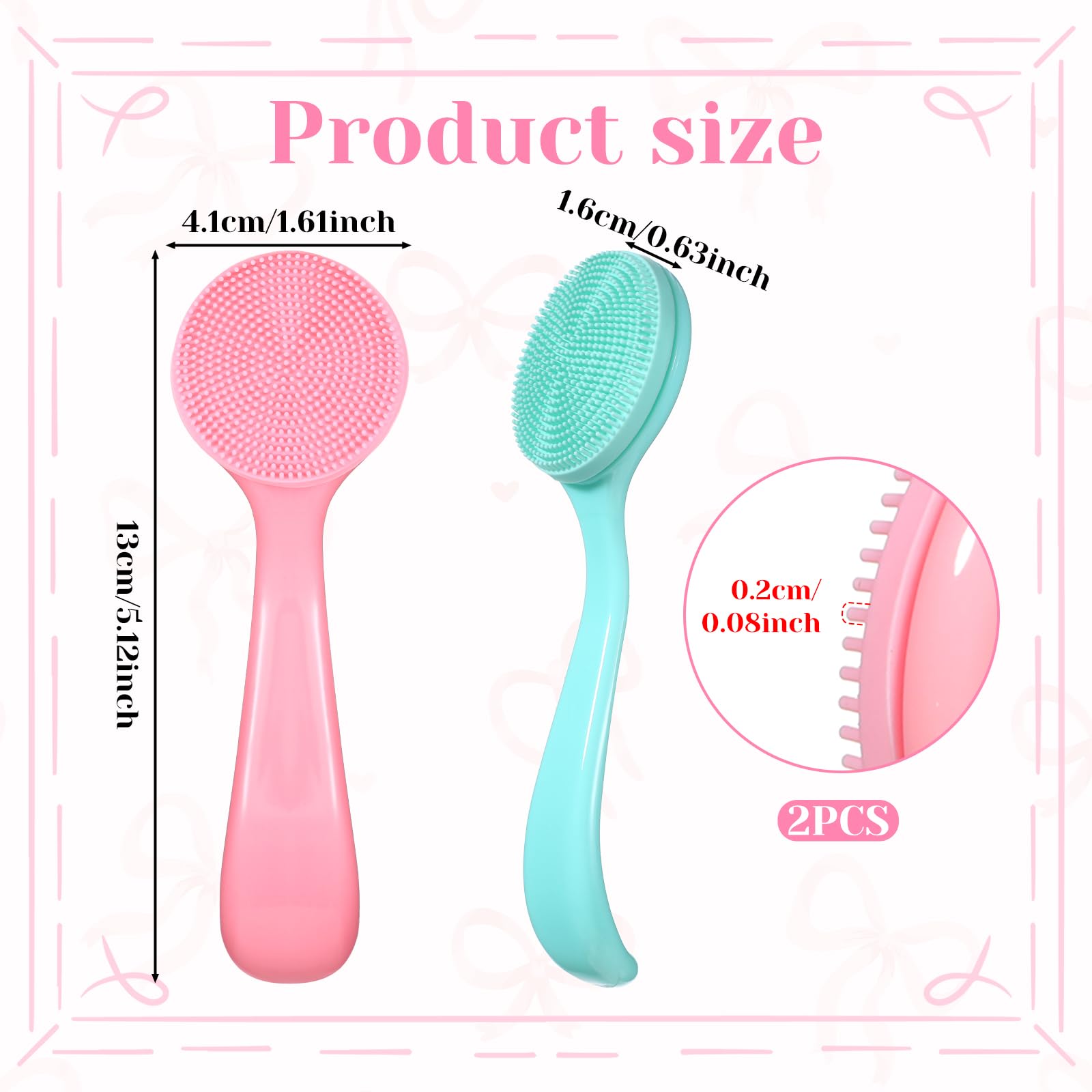 - What You Get: The set contains 2 pcs face wash brushes in pink and blue, which can enhance your skincare routine and promote healthy skin. The compact size is easy to carry and store, suitable for home use and travel.