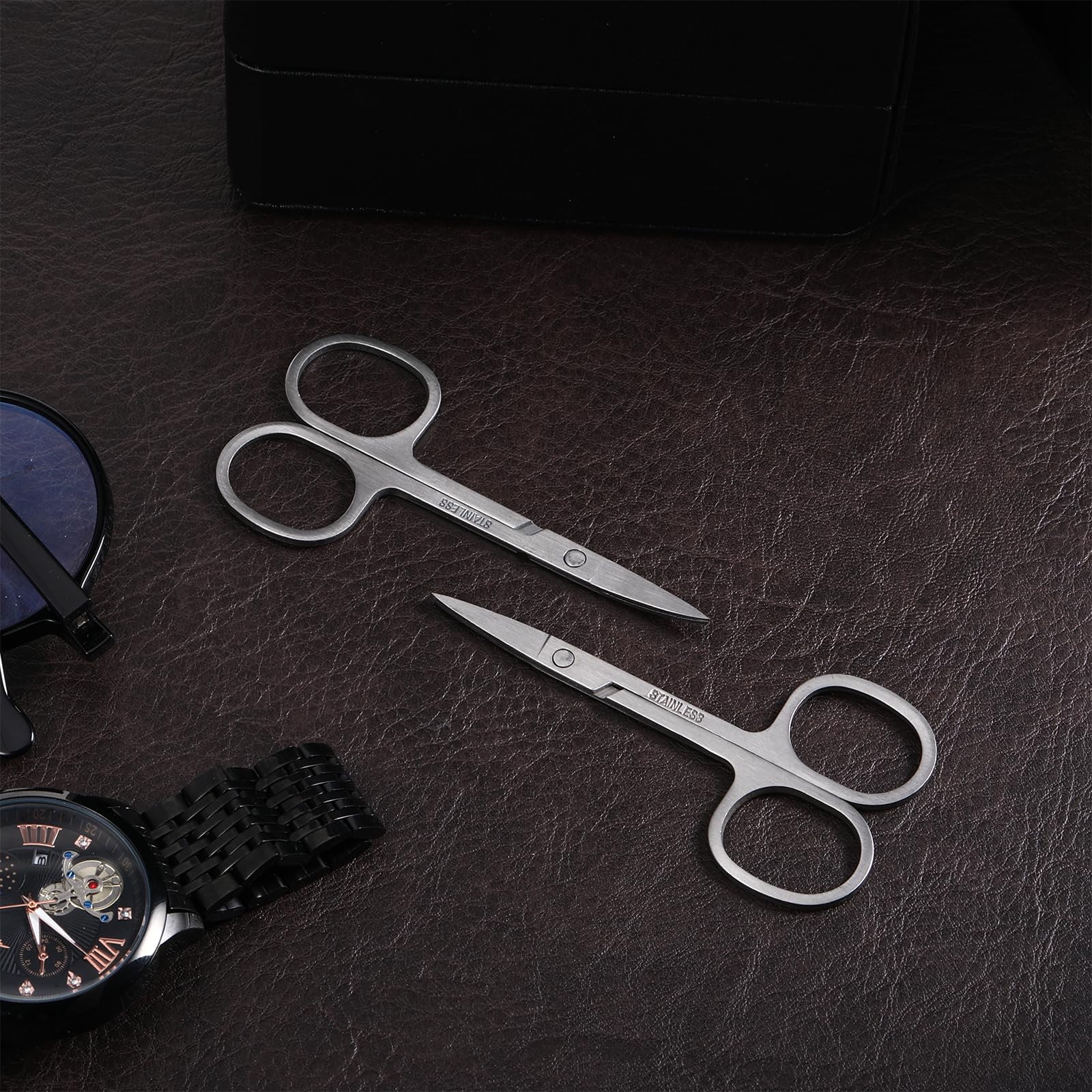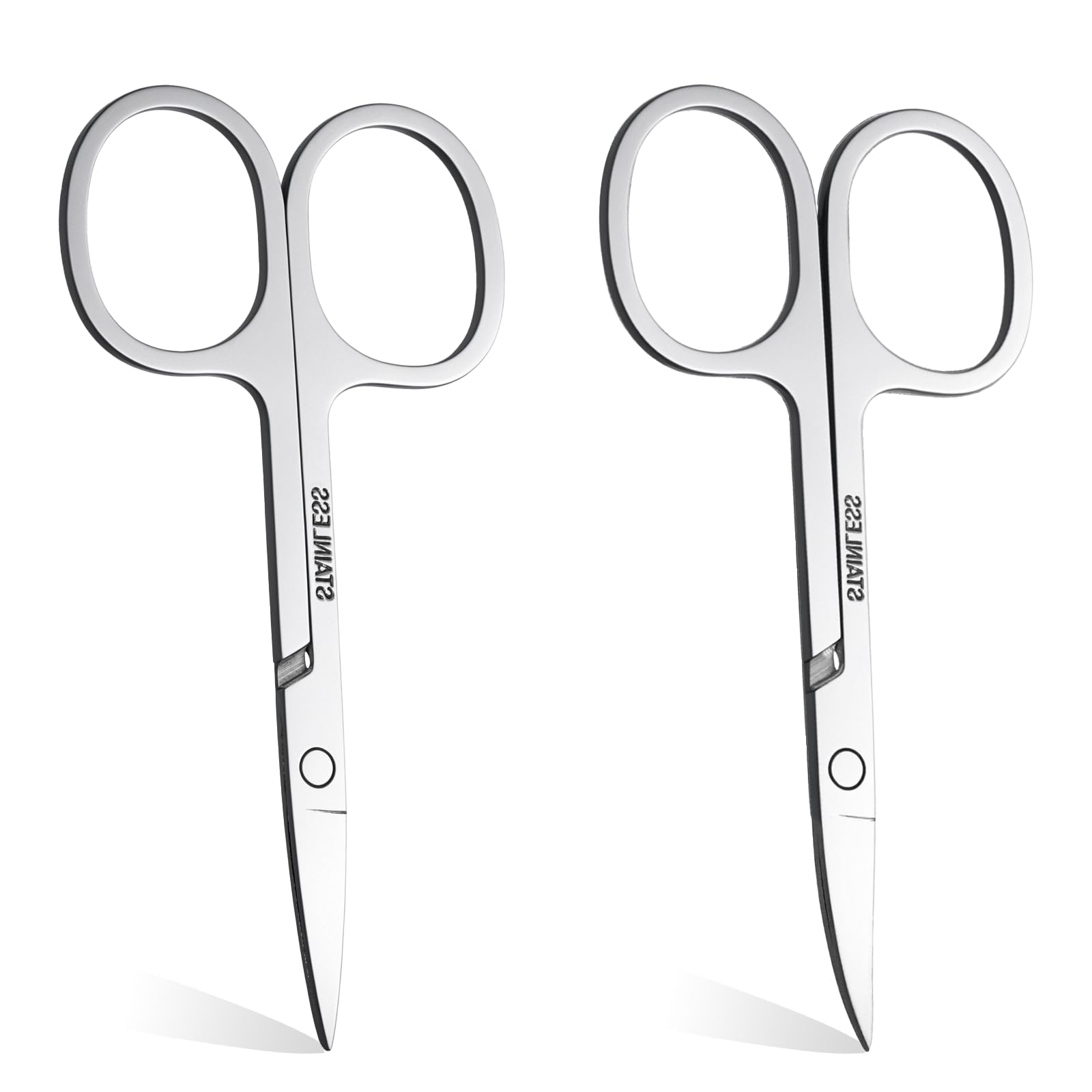 - Great Value Set: You will receive two pairs of Curved and Stright trimming scissors, from trimming fingernails to trimming facial hair, eyebrows, beards, and body hair. These stainless steel nail scissors are a must-have in your trimming toolkit