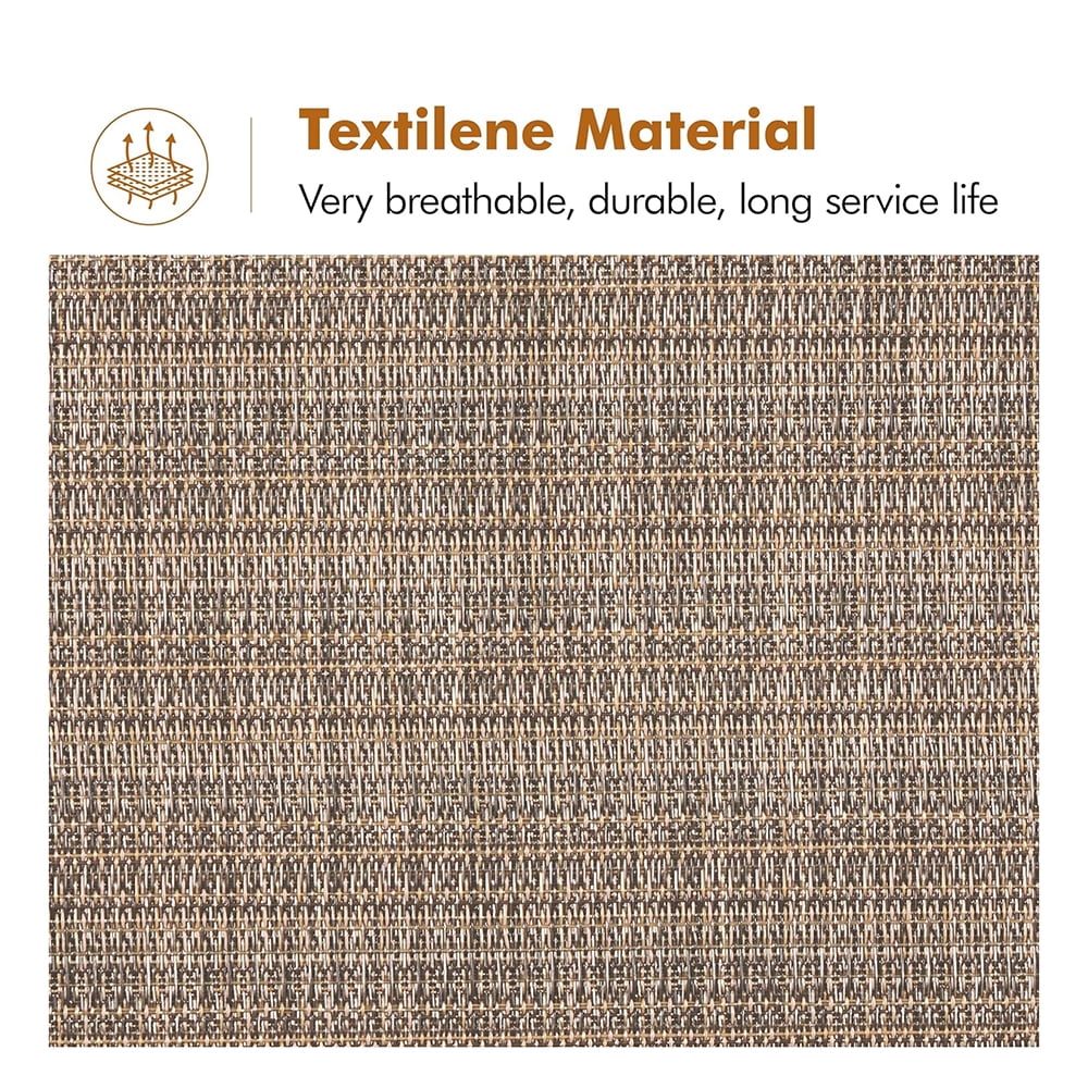 Upgrade your outdoor seating experience with our Patio Swivel Bar Stools Bistro Chairs. Designed for comfort and convenience, these high-quality chairs are perfect for your patio, garden, or lawn. Let's explore the remarkable features that make these chairs a must-have addition to your outdoor furniture collection.Say goodbye to constant standing or chair shuffling during conversations. Our patio bistro stool set features a 360° rotary seat, allowing for effortless chats without interrupting the flow. The high-quality rotating mechanism ensures smooth turning, providing a hassle-free and enjoyable experience.Experience exceptional comfort even during long periods of sitting. a porous material that offers excellent breathability. You'll stay cool and sweat-free, allowing you to fully relax and enjoy your outdoor activities.Don't let scorching summer days dampen your outdoor fun. Our quick-drying foam-padded bar stool set keeps you cool and dry. The porous outdoor fabric, filled with high-density elastic quick-dry foam. Say goodbye to sweaty seats and hello to a cozy sitting experience.Enjoy ample space and optimal support with our thoughtfully designed chairs. The soft and elastic breathable seat measures 19.7' in diameter and 20' in width. The 37' high backrest is curved to provide better support for your back and neck, while the smooth armrests add extra comfort. Relaxation and comfort go hand in hand with our spacious seating design.We prioritize your comfort with every detail. The four legs of our chairs are joined by a rounded iron tube, which serves as an additional footrest. The rounded armrests and curved backrest are designed to provide optimal comfort and support. No matter which way you turn, you'll always find a cozy spot for your feet to relax.