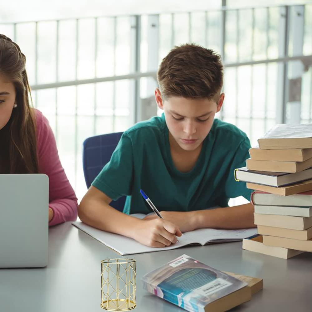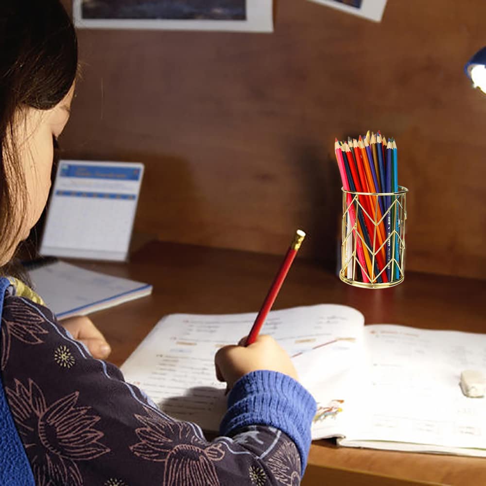 - Unique design: the hollow design of the desktop pen pot allows you to see the contents at a glance and keep it ventilated with a shiny gold look. The circular corner and smooth edge design can protect people from scratches when using it.