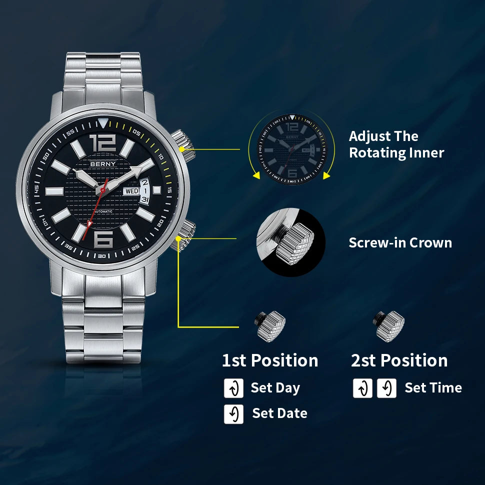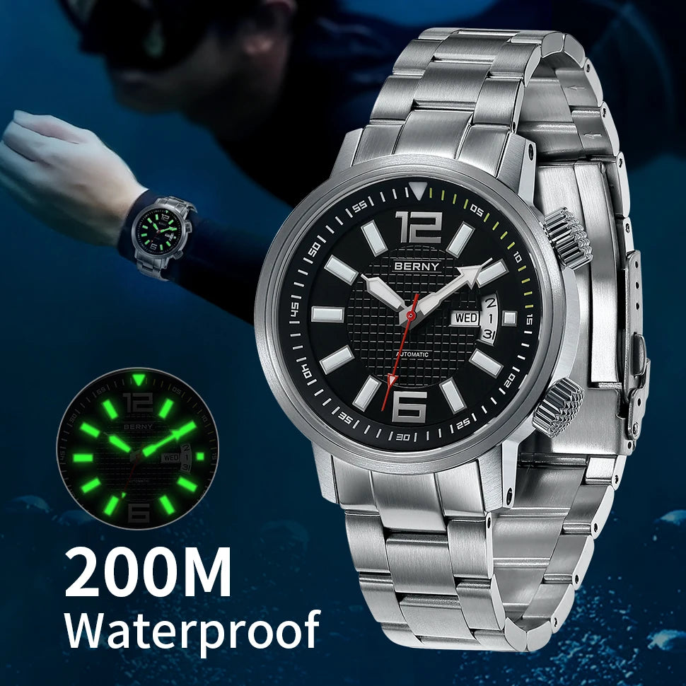 20Bar Diver Automatic Watch For Men Miyota 8205 Super Luminous Sapphire Swim Sport Mechanical Automatic Self Winding Wristwatch