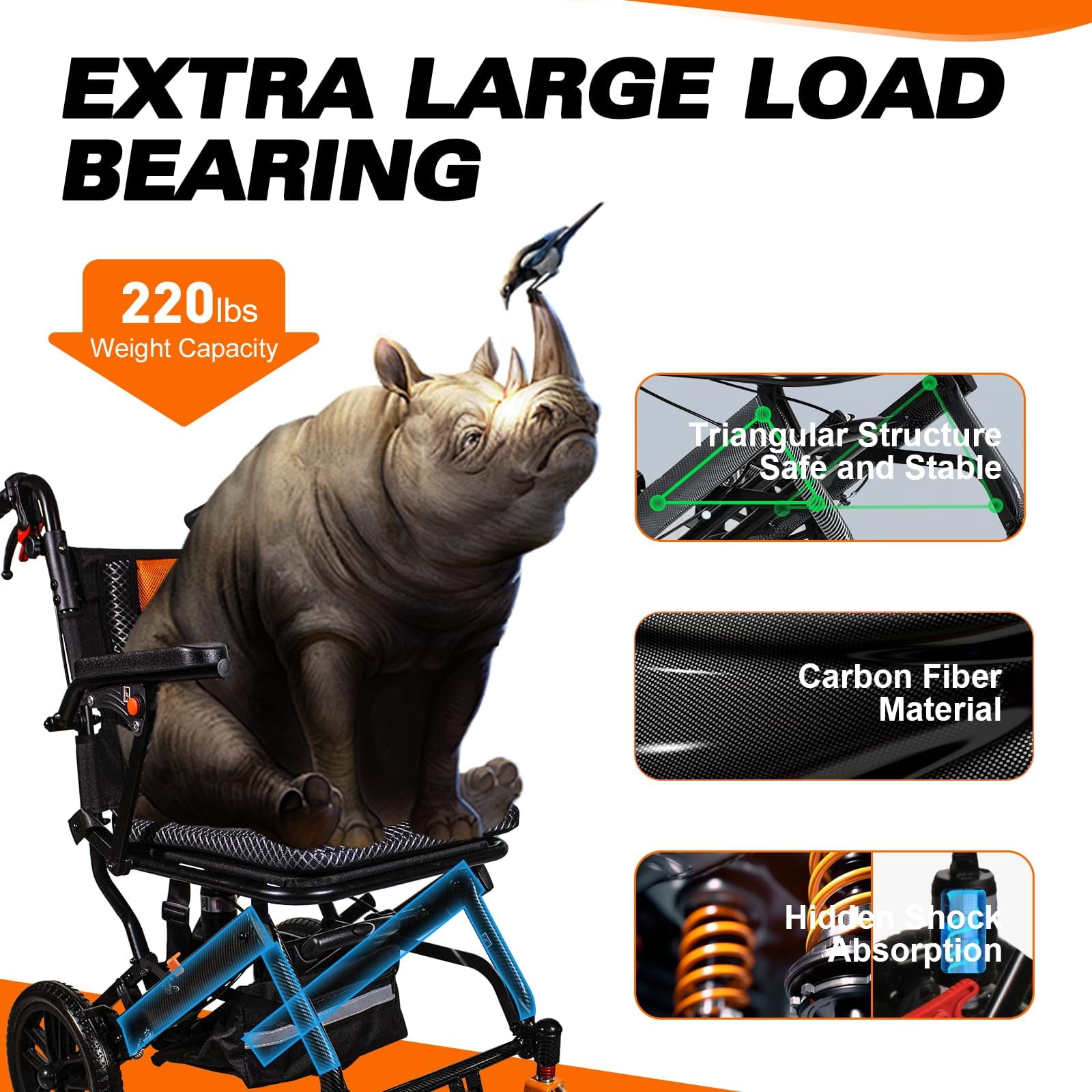 This 20lbs ultra-light transport wheelchair combines a carbon fiber-coated aluminum frame for superior durability with 10' honeycomb wheels that deliver smooth rides on any terrain. The 1-second fold mechanism and pull rod design make it perfect for travel, fitting easily into car trunks or airplane cabins. A 16.2' breathable seat, safety braking system, and ergonomic armrests ensure comfort and security for daily use, rehabilitation, or family outings—ideal for adults, seniors, and caregivers seeking reliable portability.
