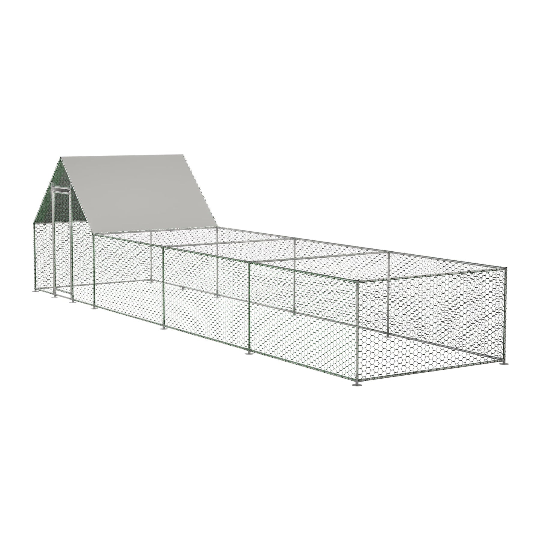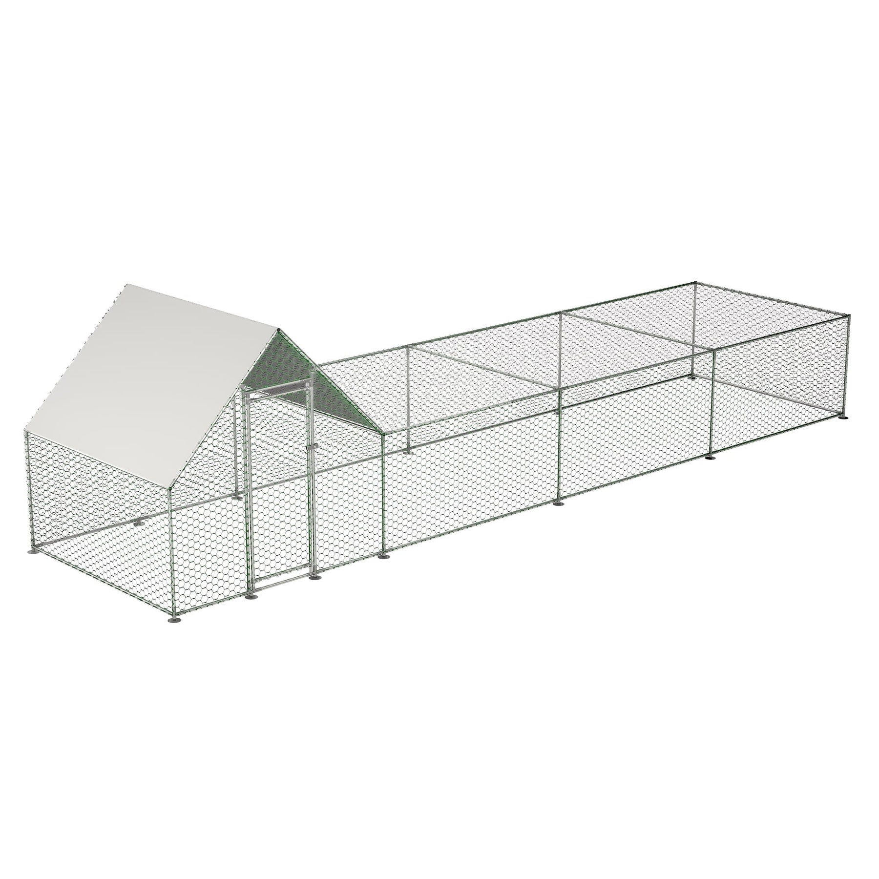 The chicken coop offers a robust and versatile solution for poultry housing, featuring a durable construction made from a strong steel frame and thick PVC-coated wire mesh. This design not only endures long-term outdoor use but also safeguards chickens from predators while resisting rust and wear. The intensive wire mesh, coated with PVC, prevents animal escape and damage from natural enemies, ensuring their safety and comfort. Additionally, the removable PE cover provides protection from sun exposure and weather elements, making it suitable for all conditions. The coop's lockable door design allows for easy access while ensuring the chickens are secure from predators. This walk-in poultry house is versatile, accommodating a range of small to medium-sized animals such as chickens, ducks, geese, rabbits, and puppies, making it an ideal choice for various farming and pet-keeping needs.