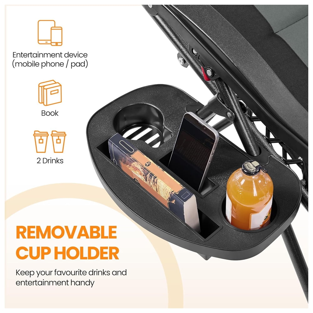 Introducing the 29in Full Padded Zero Gravity Chair, the ultimate outdoor recliner designed to elevate your relaxation experience to new heights. With its oversized dimensions and adjustable features, this portable anti-gravity lounger is perfect for your patio, beach, yard, or lawn. Let's explore the exceptional features that make this chair a must-have for outdoor enthusiasts.Featuring an Adaptive Reclining System, this 29in zero gravity chair allows you to effortlessly find your optimal relaxation position. Adjust the backrest and footrest to your desired angle, and securely lock them in place. The Oxford surface, supported by elastic straps on the metal frame, conforms to your body shape, providing ample support for every part of your body. Feel the stress melt away as you recline in comfort.Designed with your comfort in mind, this adjustable outdoor recliner is perfect for various activities such as fishing, napping, and sunbathing. The cotton-padded extended seat and backrest offer a plush and cozy experience, while the adjustable backrest and footrest allow you to customize your seating position. The secure elastic strap ensures that you remain comfortable and supported throughout your relaxation session.Crafted with a robust construction, the support frame of this zero gravity chair is made of high-hardness and lightweight painted steel. Its triangle structure design provides exceptional stability, capable of holding up to 114 kg/251 lb. Whether you prefer sitting upright or lying down in zero gravity mode, this chair's construction ensures your stability and peace of mind. Relax with confidence, knowing that this chair is built to withstand your needs.Say goodbye to bulky outdoor furniture. This folding outdoor chair is designed with space-saving and high portability in mind. With an overall weight of 8.5 kg/18.8 lb and a folded size of 86.5 L × 73.5 W × 11 cm/34″ L × 29″ W × 4.3″ Thickness, it takes up minimal space and effort to store. Whether it's in your car trunk, garage, or lock room, you can easily find a spot for it. Enjoy the convenience of having your relaxation companion ready to go whenever and wherever you desire.Transporting this outdoor chair is a breeze, thanks to the buckle and strap system. Simply fold the chair and lock the buckle to keep it securely in the folded mode. The included strap allows you to shoulder it out or move it to another location without the need to carry it in your hand.