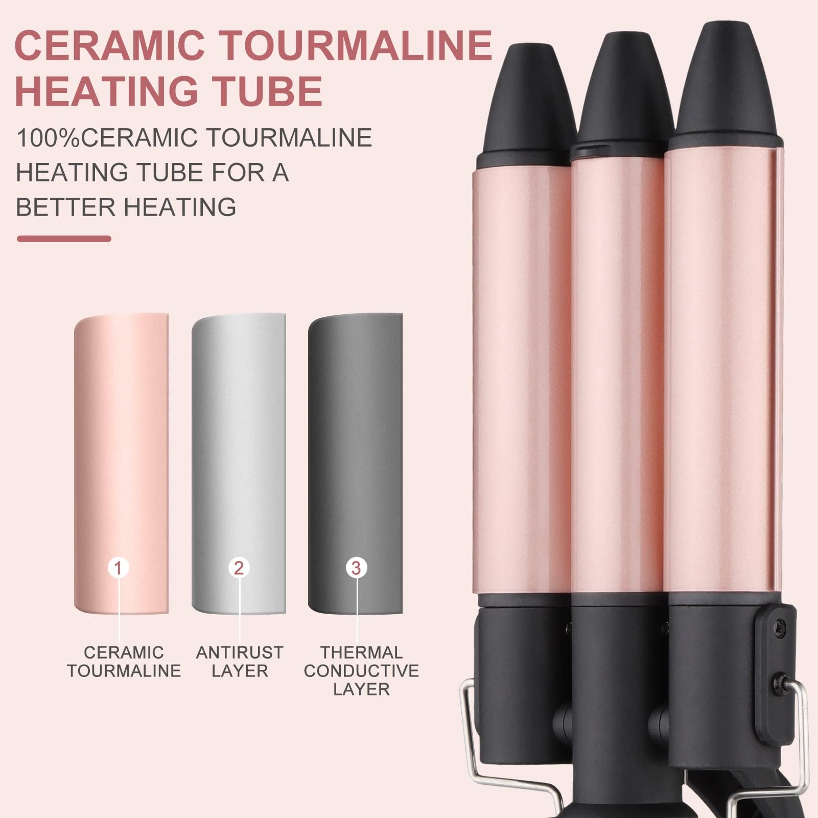 3 Barrel Hair Waver Curler Mermaid Curling Wand 25MM Crimper Ceramic Tourmaline Beach Waves Tongs Fast Heating Deep Curly Iron with Temperature Control for Women Girls Hair Styling Tools
