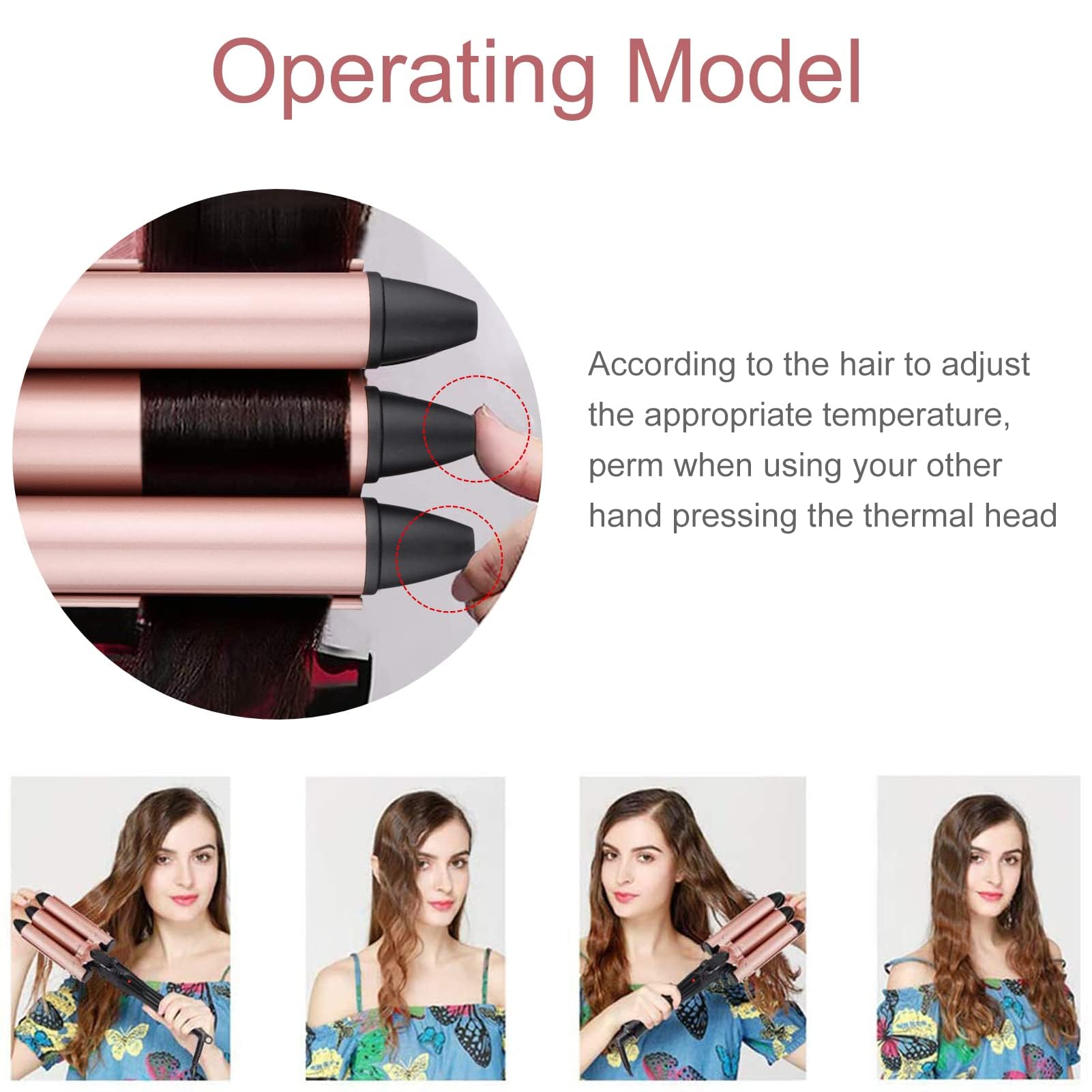 - 【3 Barrel Hair Waver Design】This curling wand is designed with 25mm triple barrels to creating a natural and elegant 'S' stylish looking quickly, which can last all day. The professional hair waver use 360-degree rotary power cord, heat insulation bracket and anti scald head, making hair curling more safe and comfortable.