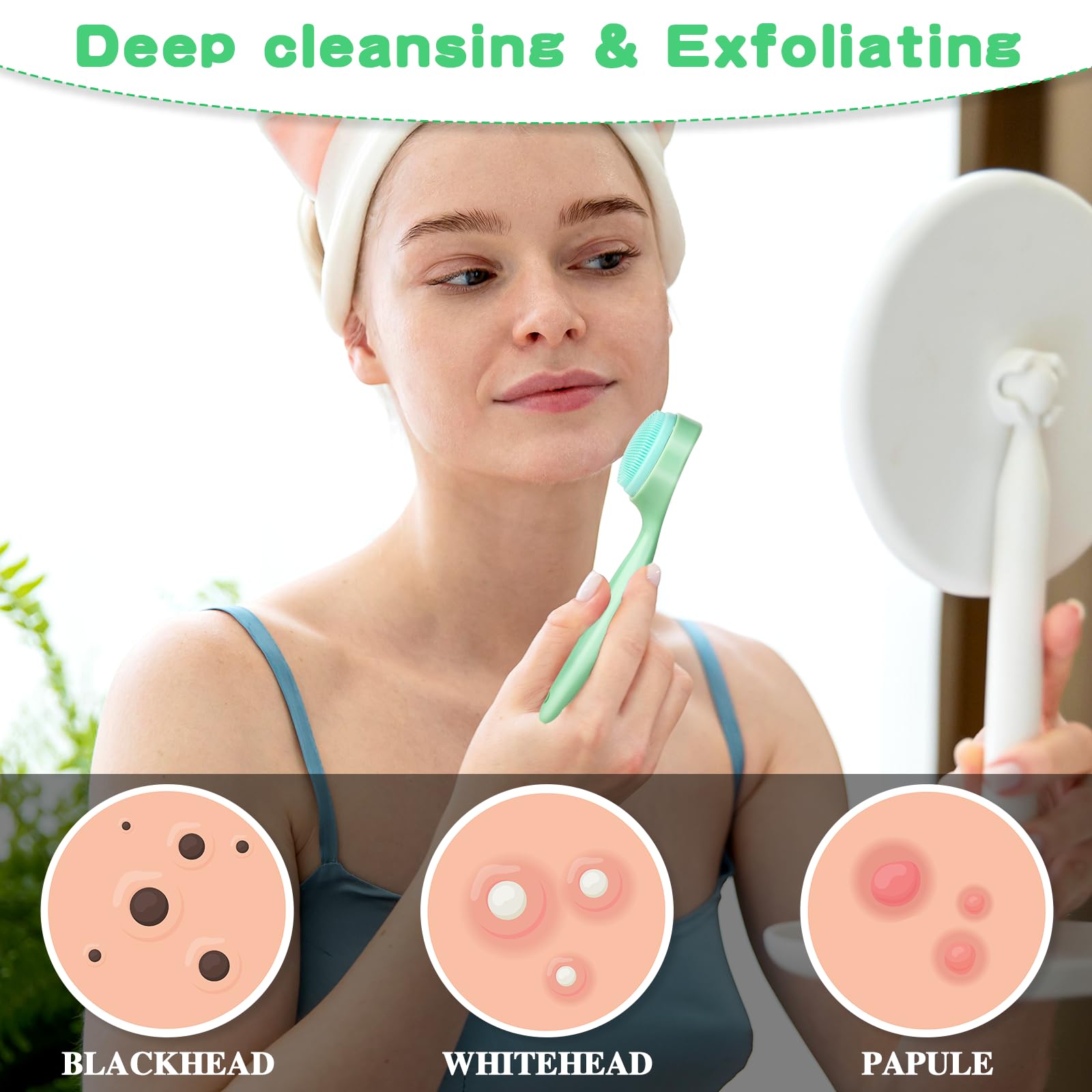 - 【Effective Cleansing】The cleansing brush is not only a cleanser to remove deep-seated dirt, excess oil, and residual makeup, but can also be use as a daily spa massager to help unclog pores and keep skin hydrated
