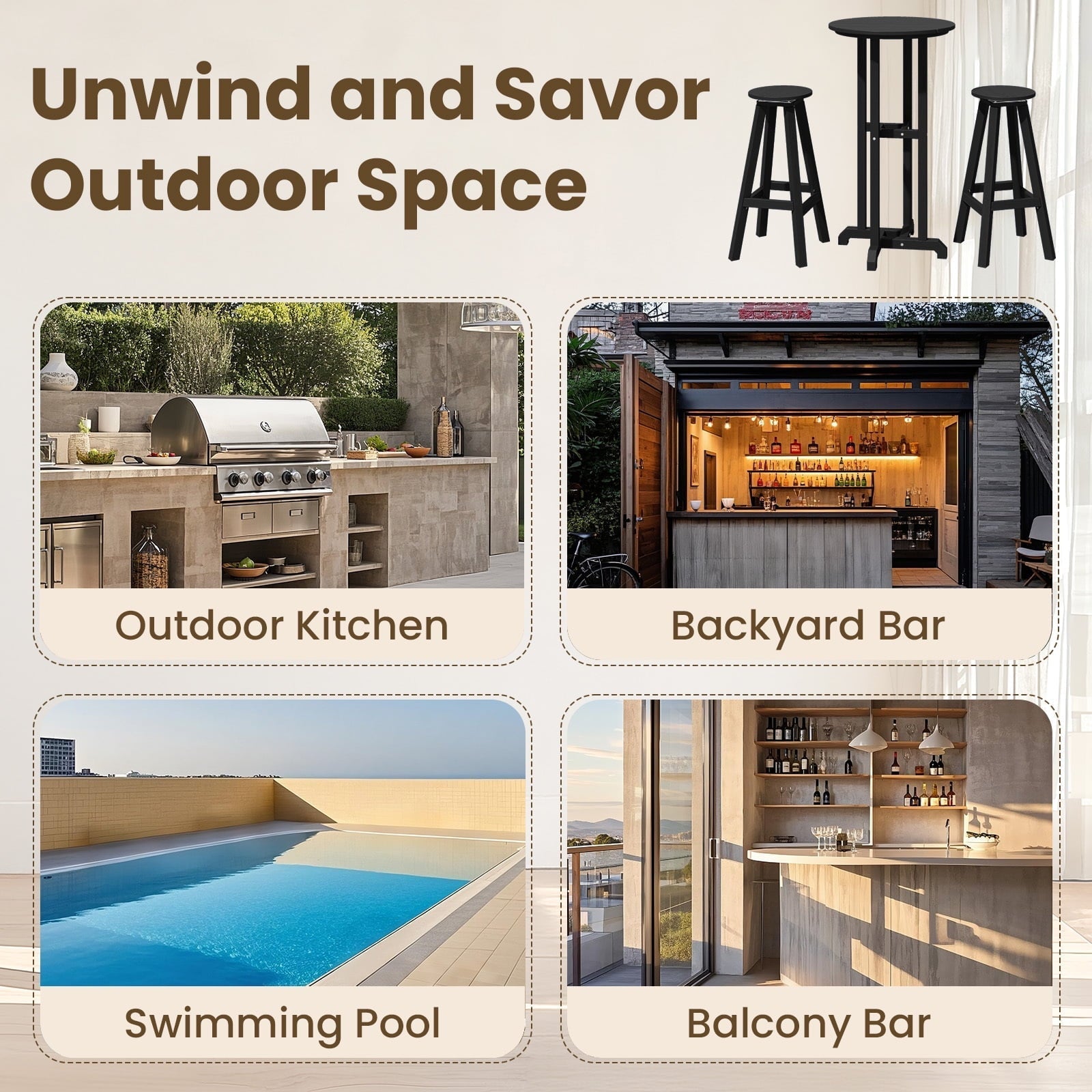 Elevate your outdoor space with our expertly crafted patio bar sets and swivel stools, made from weather-resistant HDPE material built to withstand the elements all year round. Whether you're hosting poolside parties, relaxing on the deck, or upgrading your indoor bar, our ergonomic, low-maintenance furniture blends comfort, function, and modern style. Designed for durability, easy cleaning, and timeless appeal — we help you create a space where memories are made.