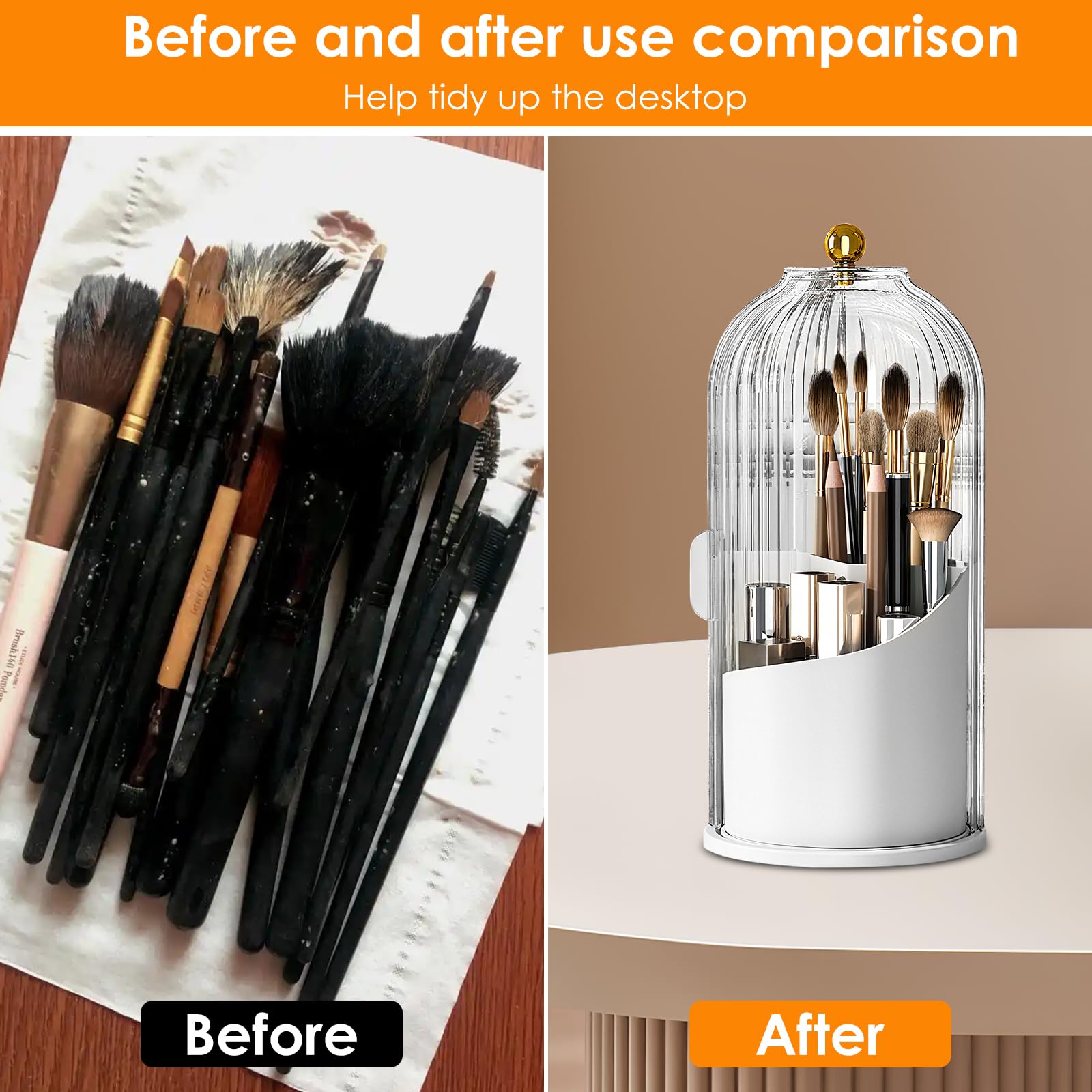 ✔ Multi-Tier Custom Storage: Fits tall makeup brushes (up to 25cm), lipsticks, compacts, dental tools, and mini bottles – all visible at a glance!