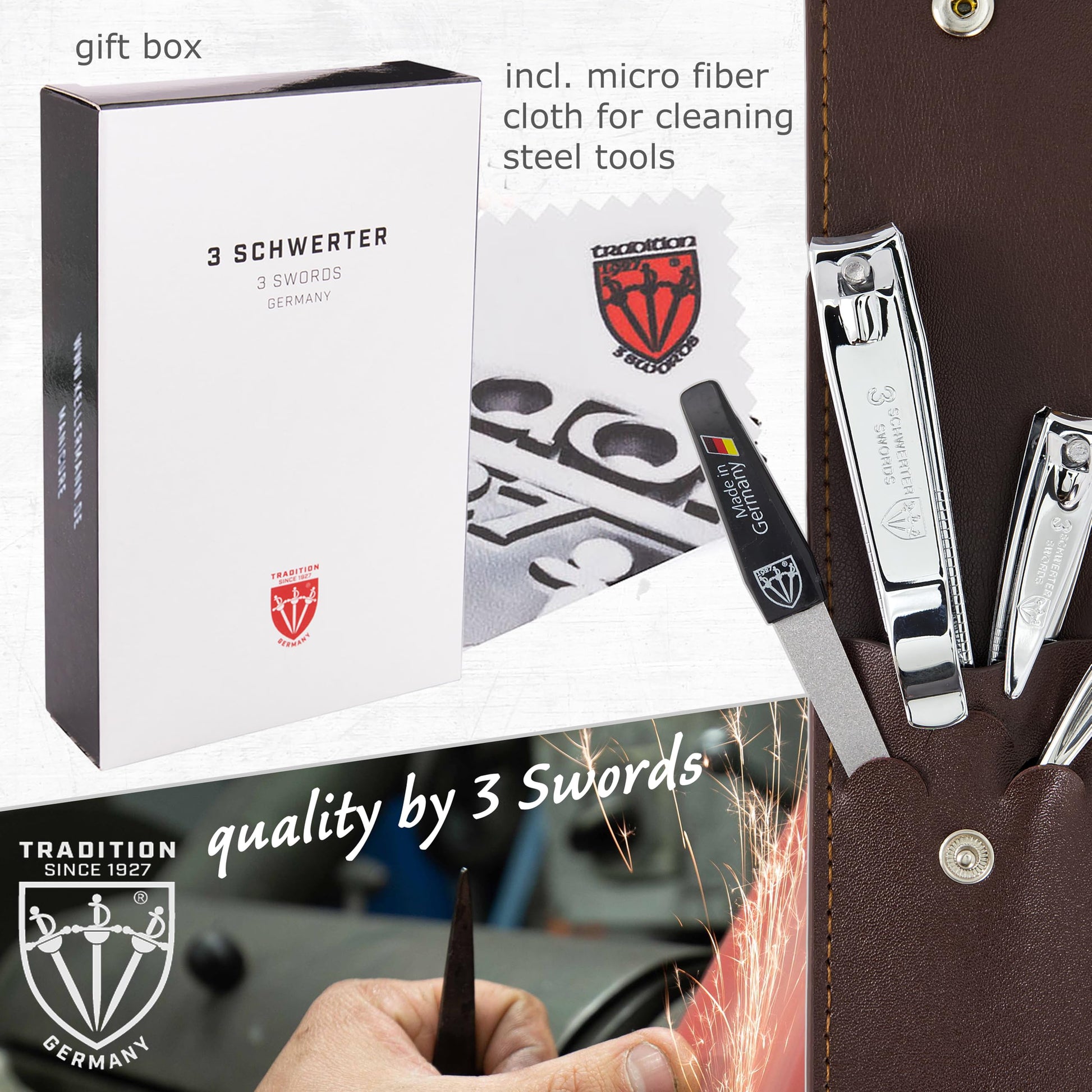 - NAIL CARE KIT from 3 Swords Germany with professional manicure and pedicure tools. Our sets for home and travel use convince trough highest levels of quality, modern design, durability and German engineering combined with a first class customer service.