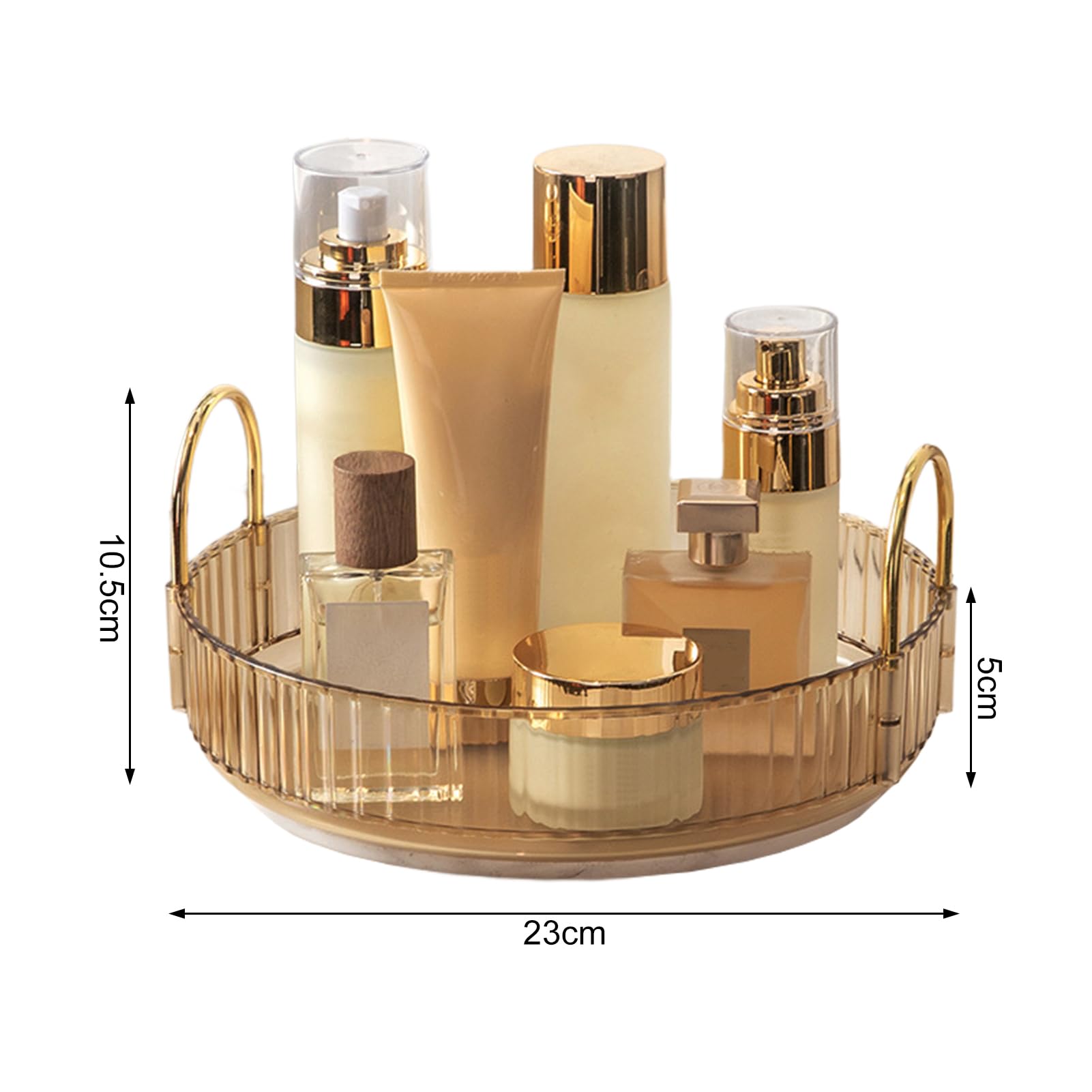 - 【360 Degree Rotating Design】 The skincare organiser is designed with a reinforced base that can be turned 360°smoothly and silently, allowing you to organize and find the cosmetics. And the edge on the tray is high enough to prevent makeup from falling during rotation.