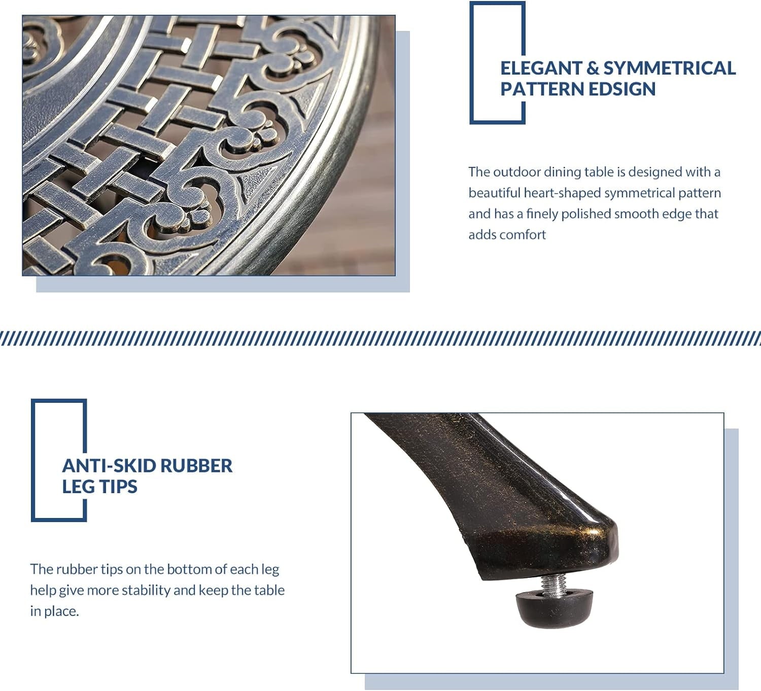 SOCIALCOMFY 38.5β Outdoor Patio Cast Aluminum Dining Round Table with 2' Umbrella Hole