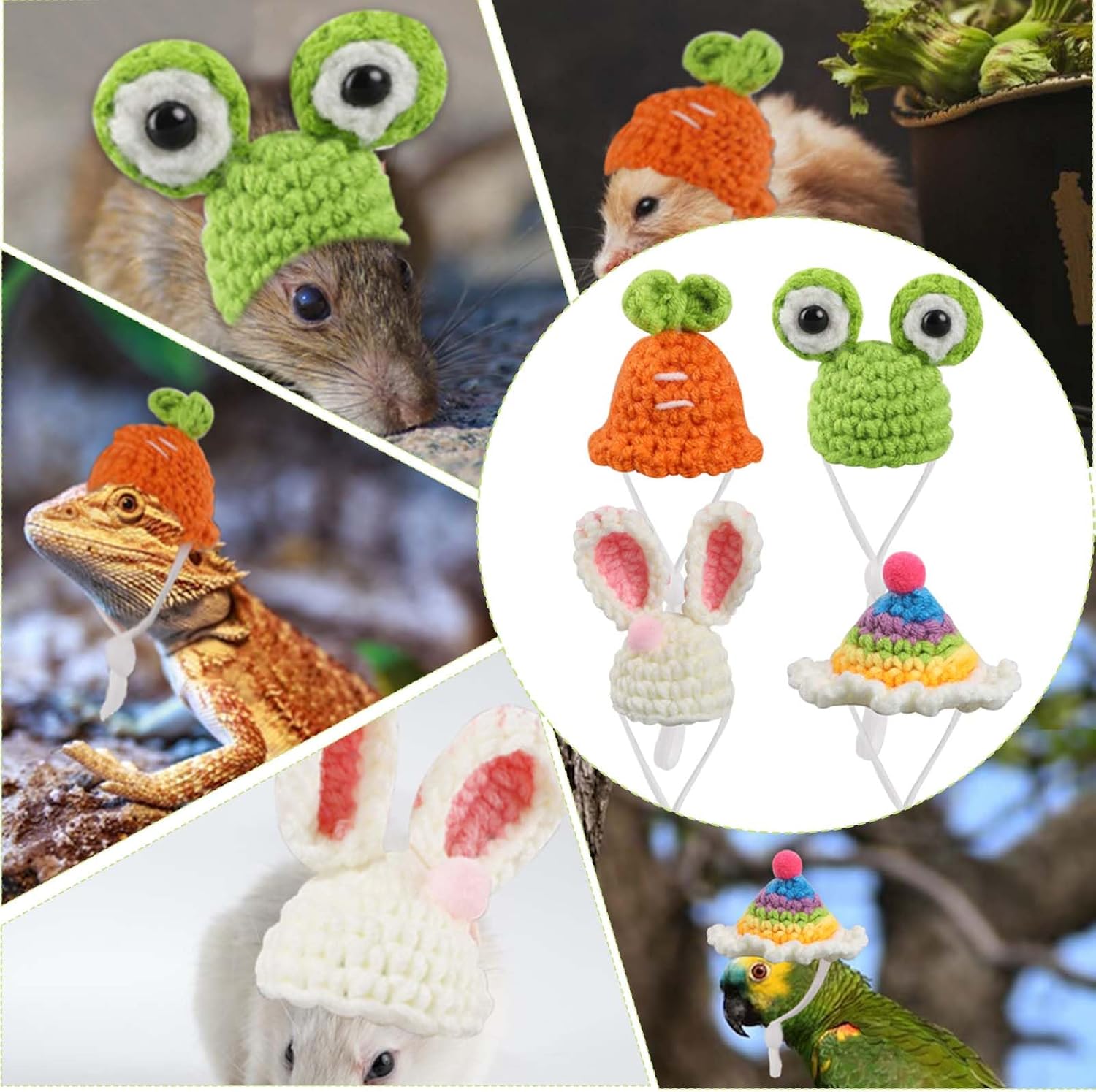 - 【Widely Used】These mini hand-knitted hats are suitable for small-sized pets, such as hamsters, guinea pigs, squirrels, lizards, parrots, pigeons, etc. They are also suitable as exquisite costume accessories for Christmas, Halloween, pet birthdays, animal theme parties, etc.