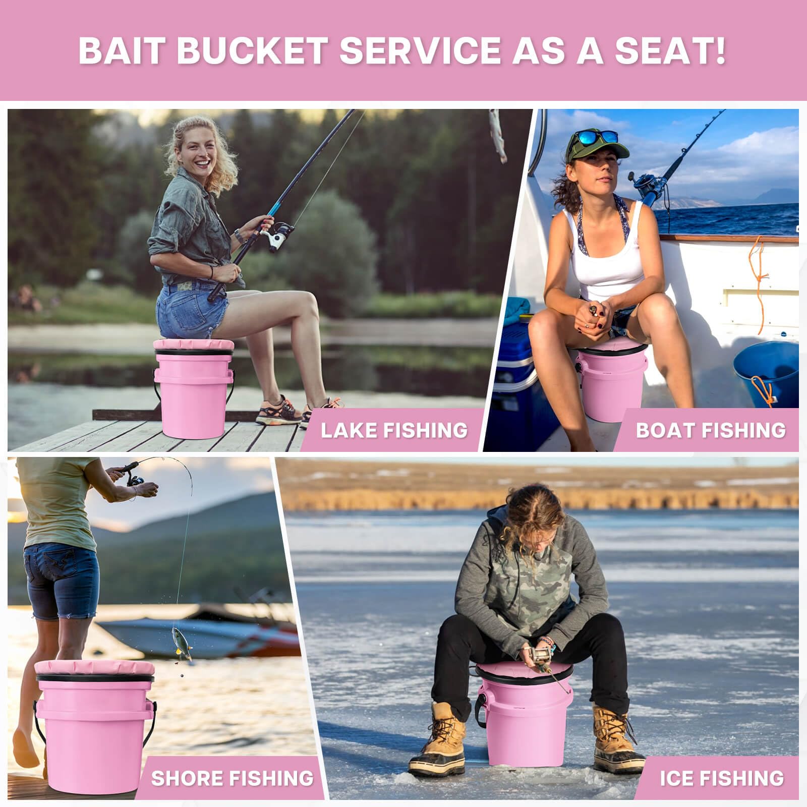 • 360-Degree Rotating & Noise-Free 5-Gallon Bucket Seat Cushion: Featuring a silent design, the swivel bucket seat allows for smooth, quiet directional adjustments. Ideal for outdoor activities like ice fishing, field hunting, baseball training, and more.