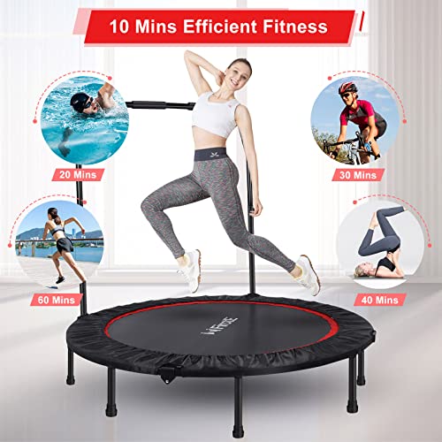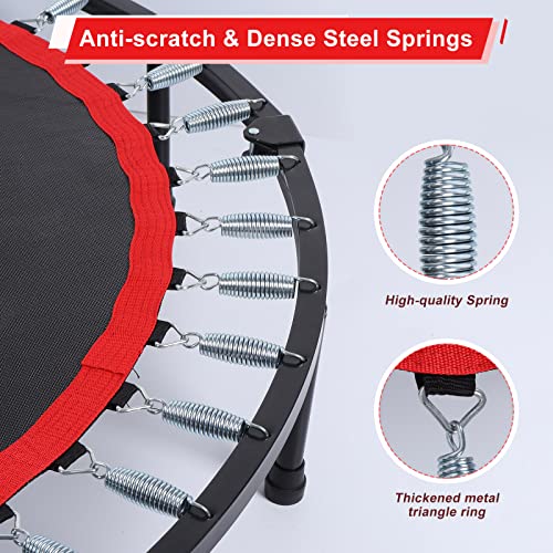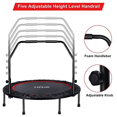 - Safe Adjustable Bar: Our jump trampolines provide five different levels of foam handrail heights( 31.5inch-39.8inch), which can be easily adjusted to fit for adults of different heights and ages. Anti-slip, sweat-resistant foam covered adjustable bar makes you more comfortable when grasping
