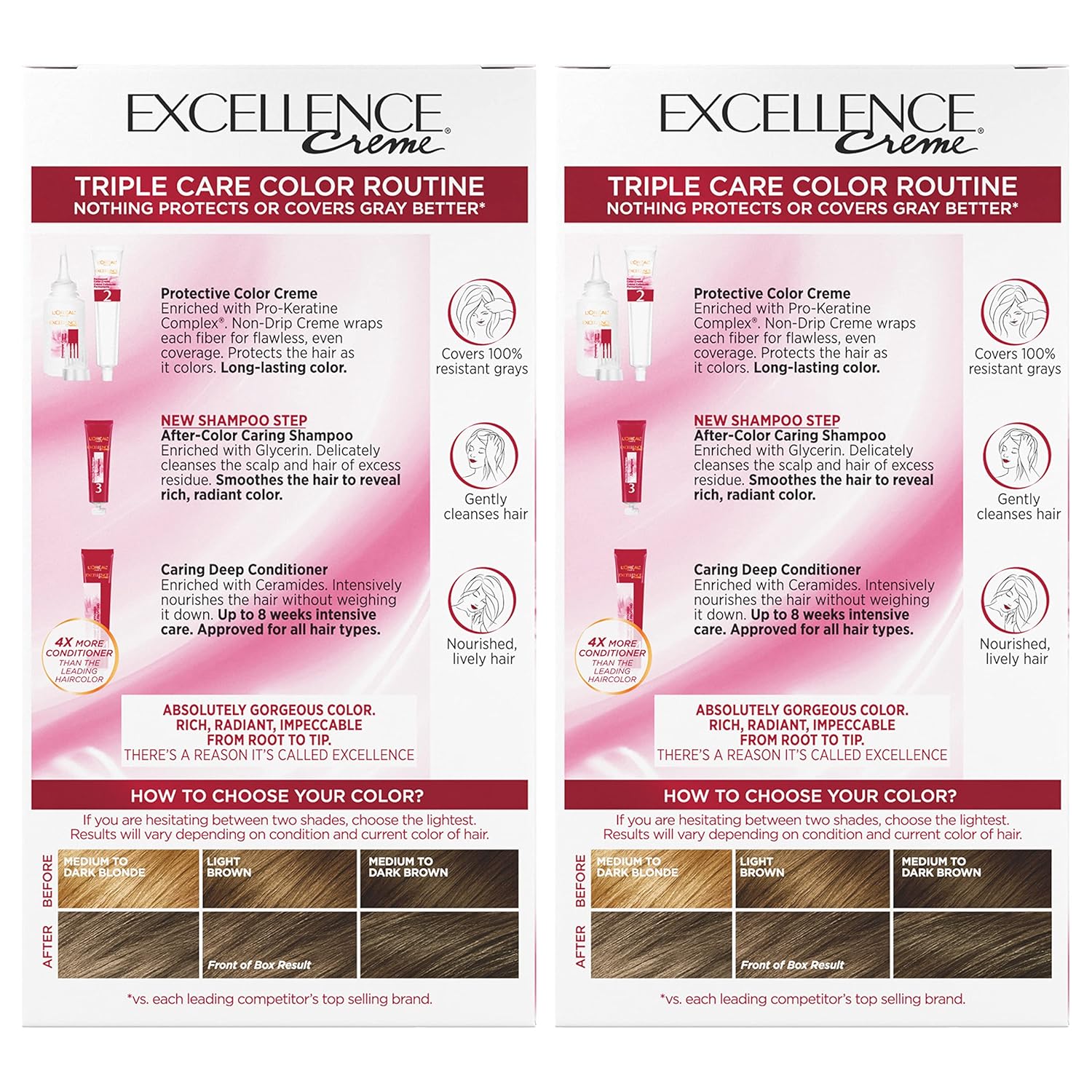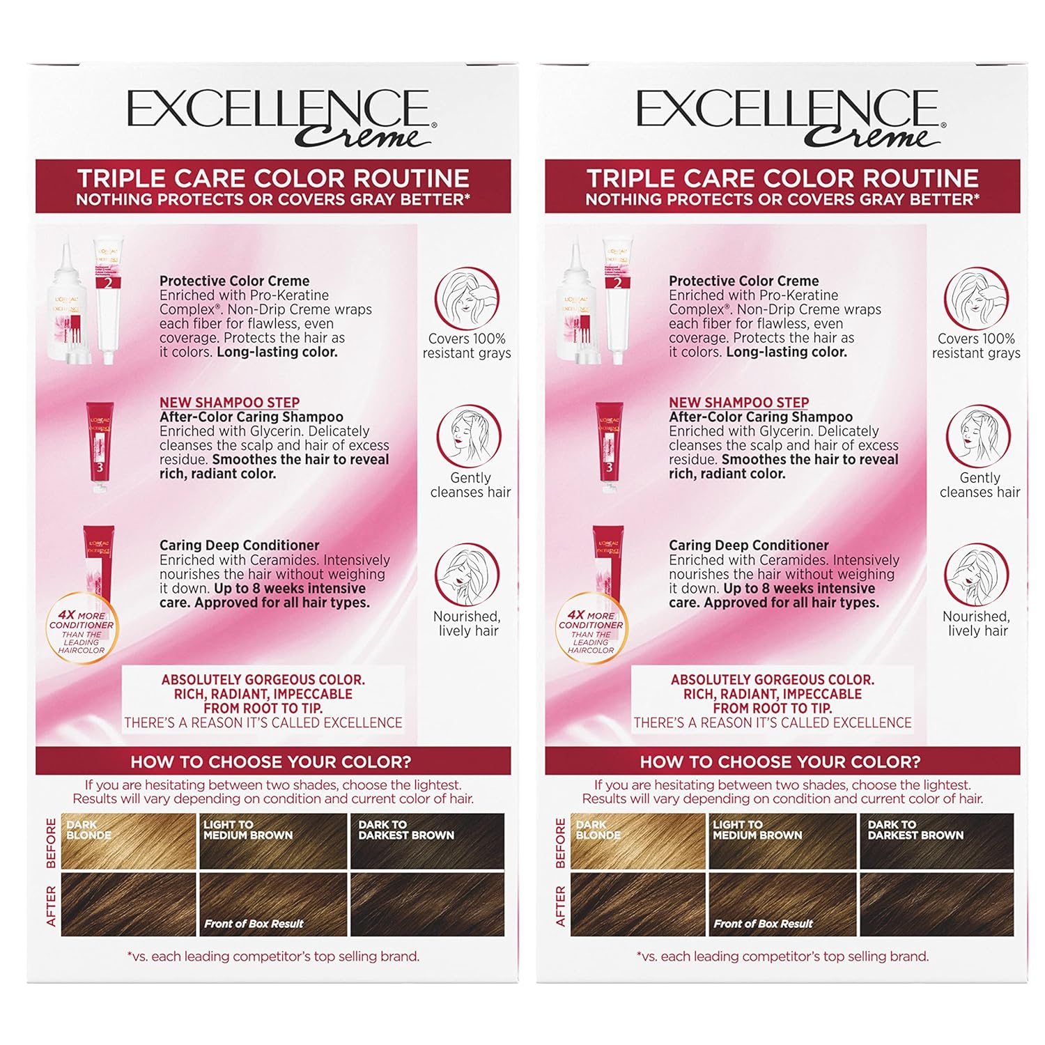 - Your Excellence Just Got Better: New Triple Care Color Routine protects hair before, during, and after coloring for up to 8 weeks with a combination of ceramide, pro-keratine, and glycerin for rich color and revitalized hair. New look same great shades