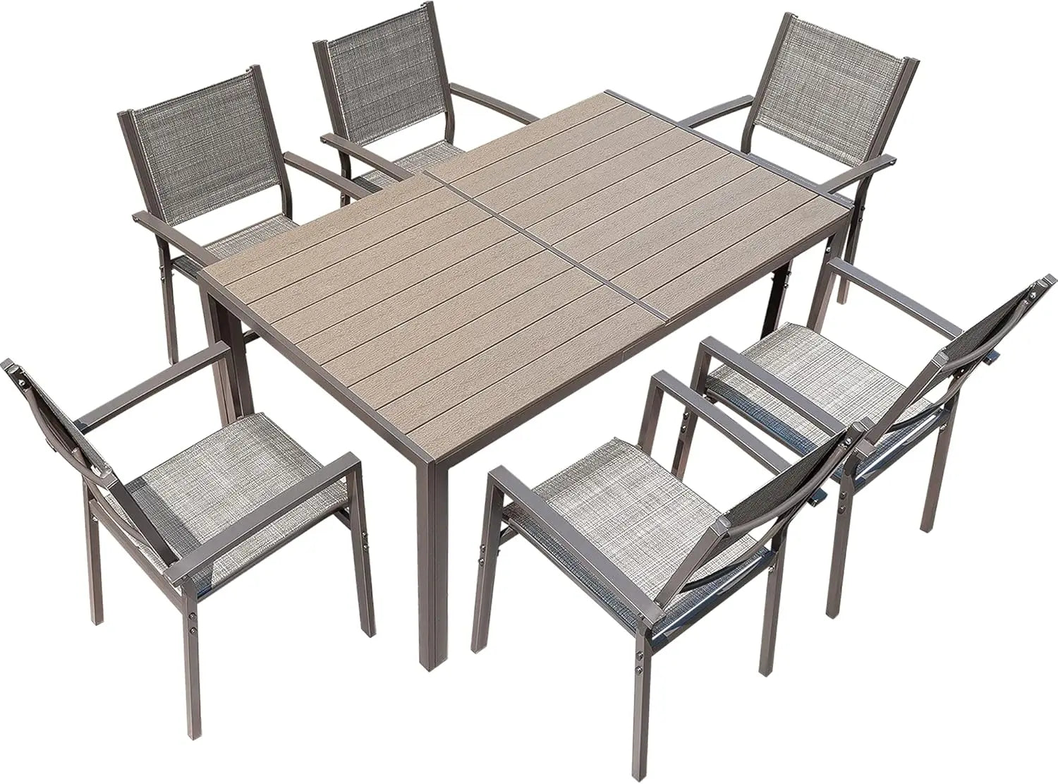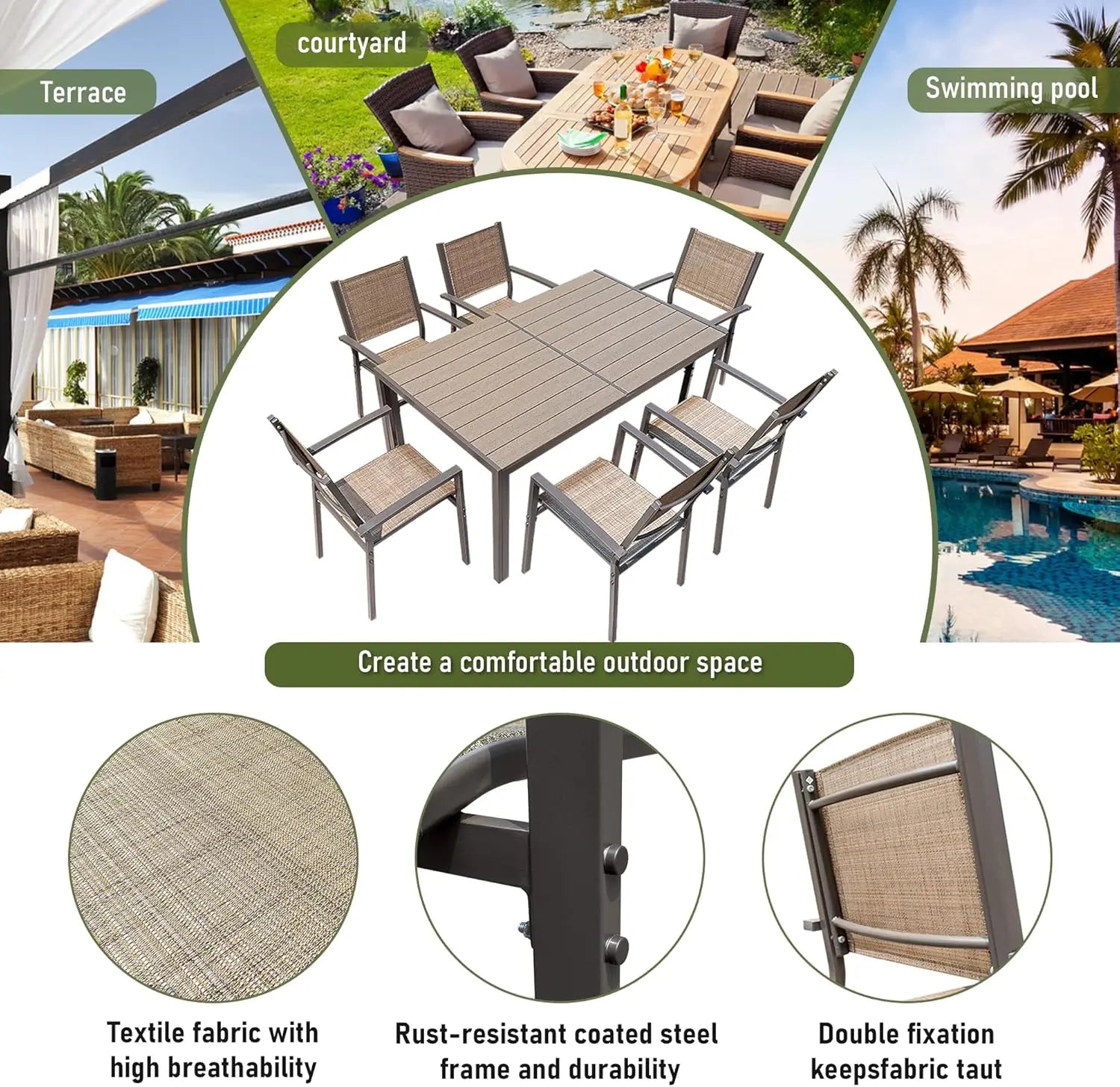 7 Piece Patio Dining Set Outdoor Furniture Set with Weather Resistant Table and 6 Stackable Textilene Chairs for Garden,