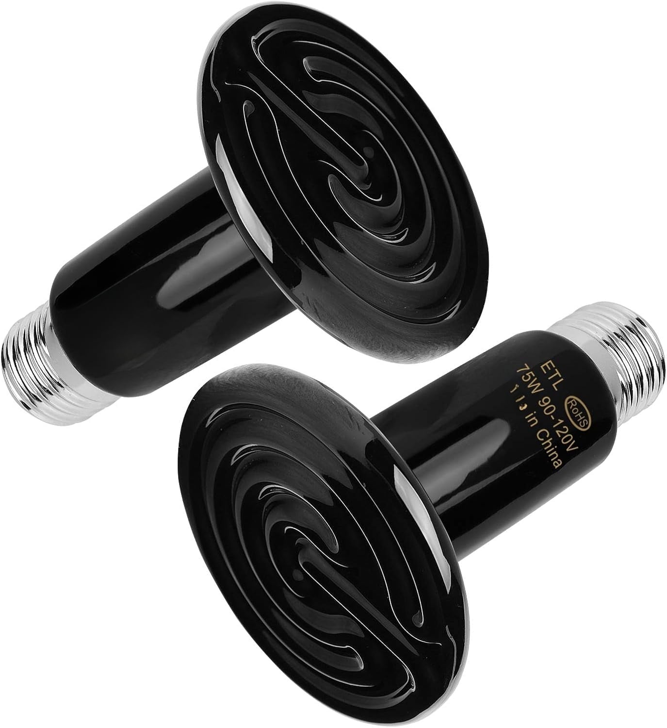 75W Ceramic Heat Lamp, Infrared Reptile Heat Emitter Heater Lamp Bulb for Pet Brooder Coop Chicken Lizard Turtle Snake Aquarium, No Light Emitting No Harm - 2 Pack