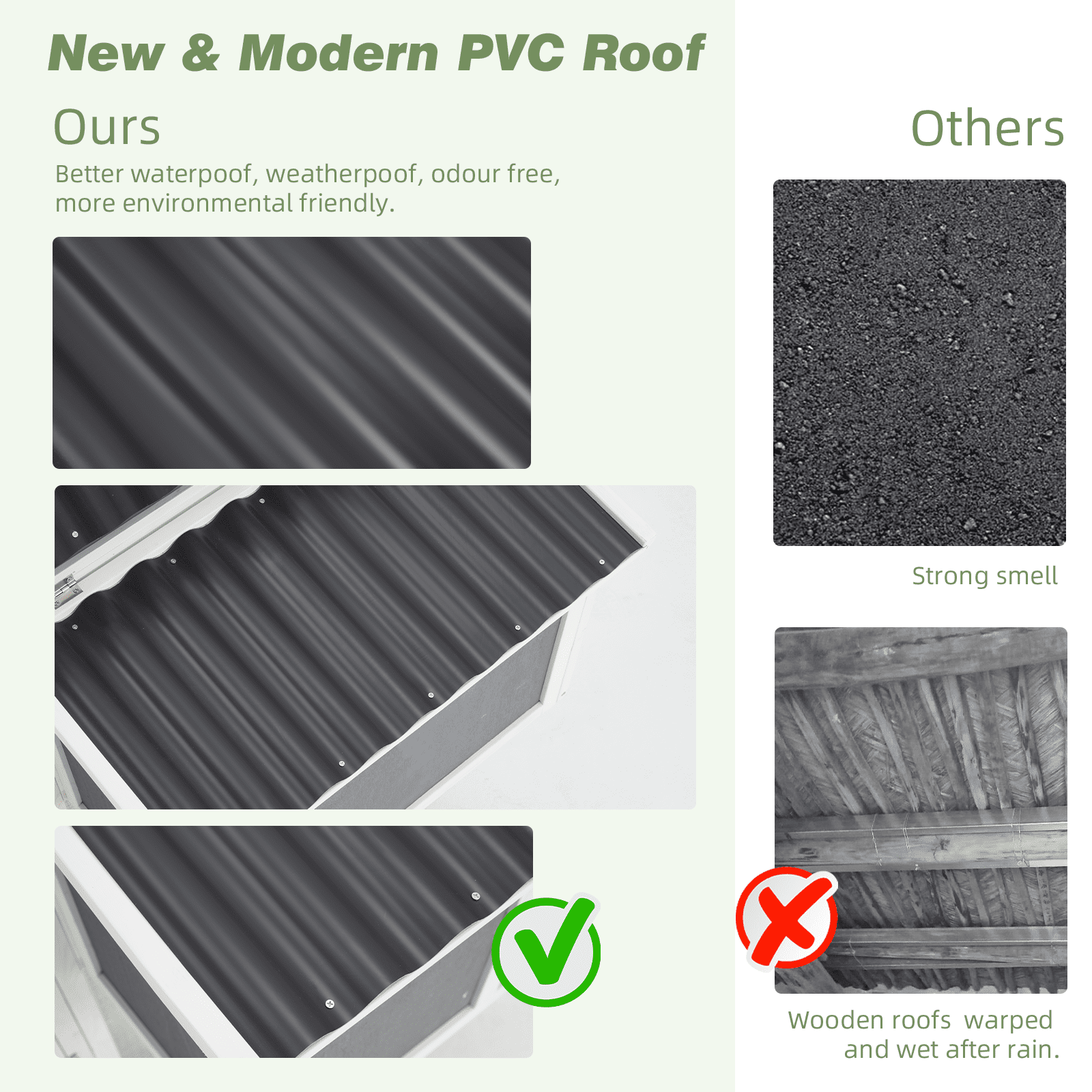 - π§οΈ Built to Brave the Weather The waterproof roof shields your chickens from rain and harsh outdoor conditions, so they stay dry and cozy no matter what. And with ground spikes to firmly secure the coop (just grab your own nails), even windy days wonβt shake things up.