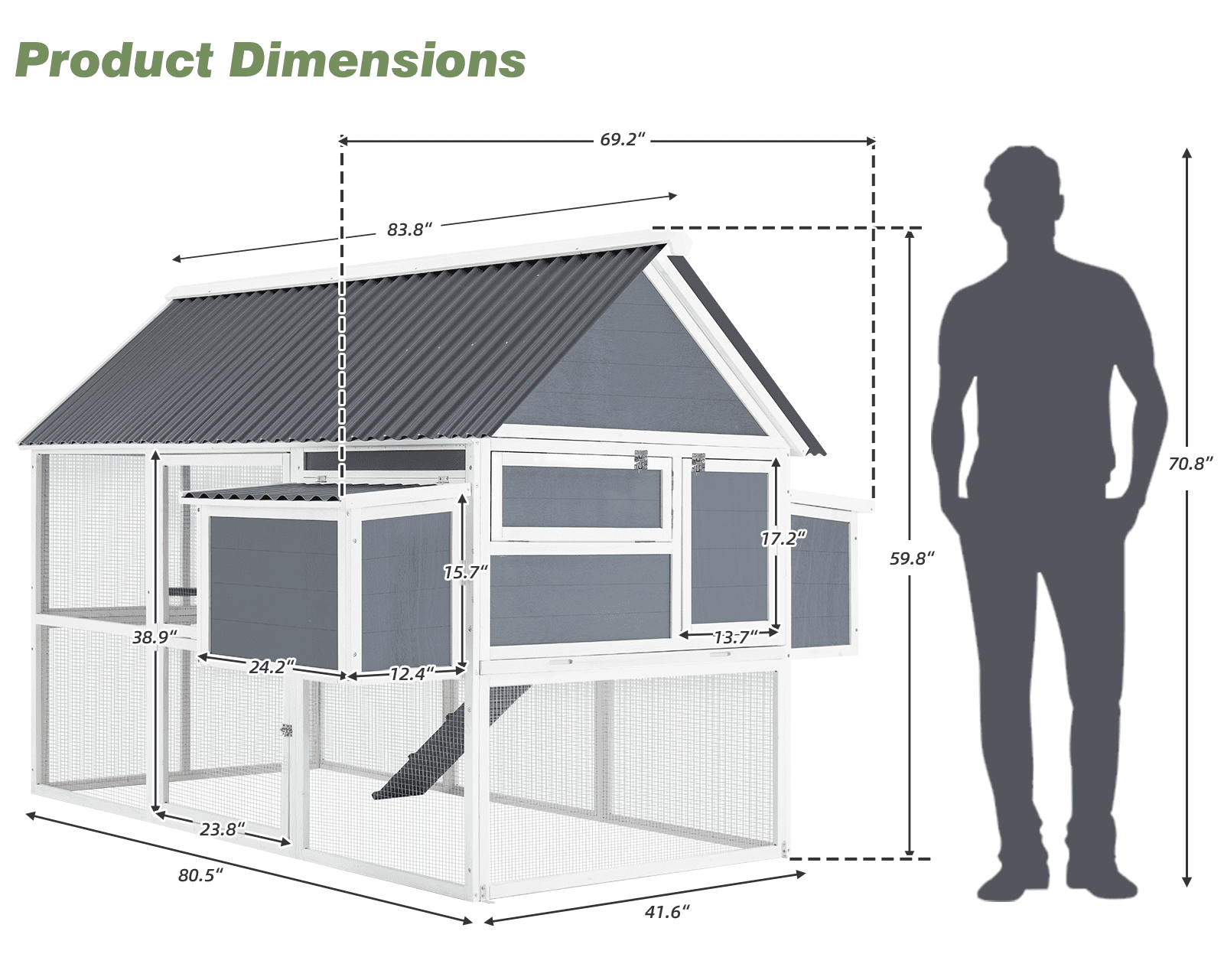 - π Spacious & Practical Measuring about 84β long, 69β wide, and 60β tall, this coop is designed with plenty of space and easy access in mind, making life easier for both you and your chickens.