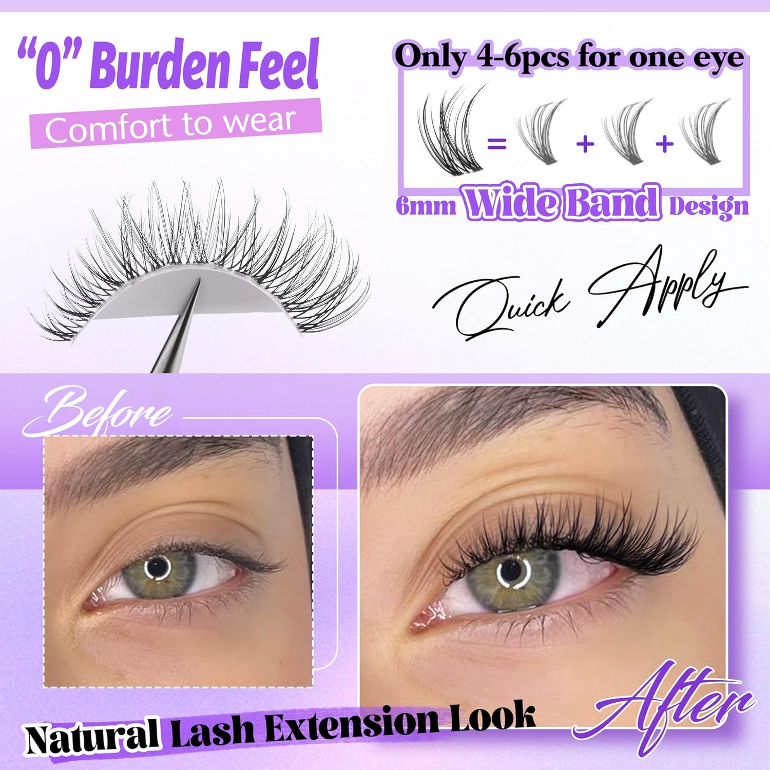 - Comfortable and Lightweight: Featuring a thin band, our lash clusters ensure a lightweight and comfortable wear, barely noticeable even after a long day. The left and right specific clusters match the natural curvature of your eyes for a perfect fit.