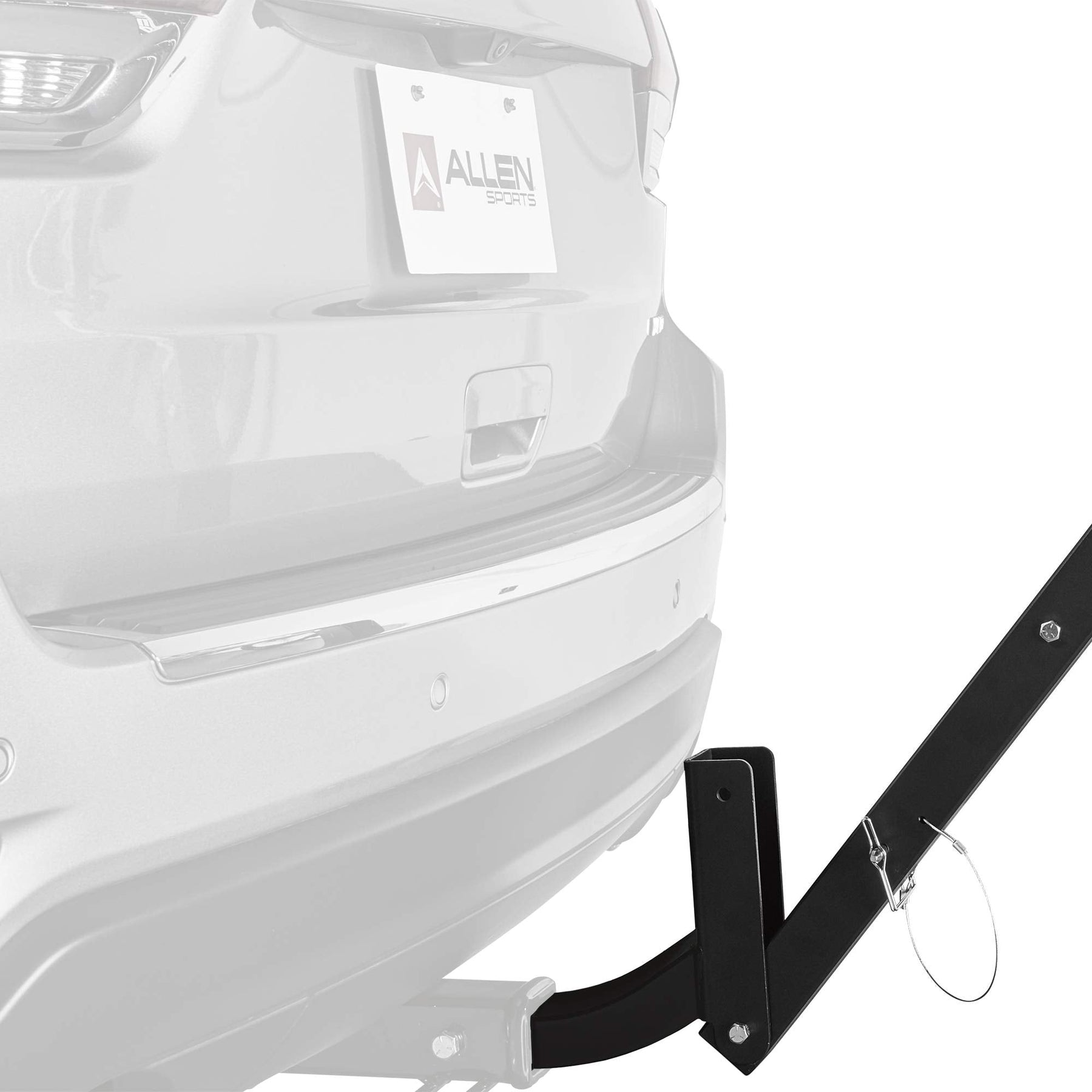 The Allen rack boasts a patented tie-down system and individually cradles up to four bikes in the 22-inch carry arms. As easy to install as it is to use, the rack sets up in less than 5 minutes with a no-wobble bolt that holds it still within the hitch. When the rack is not in use, the carry arms quickly drop out of the way and fold down flat with a patented single pin mechanism and the rack tilts up to allow easy access to the lift gate.