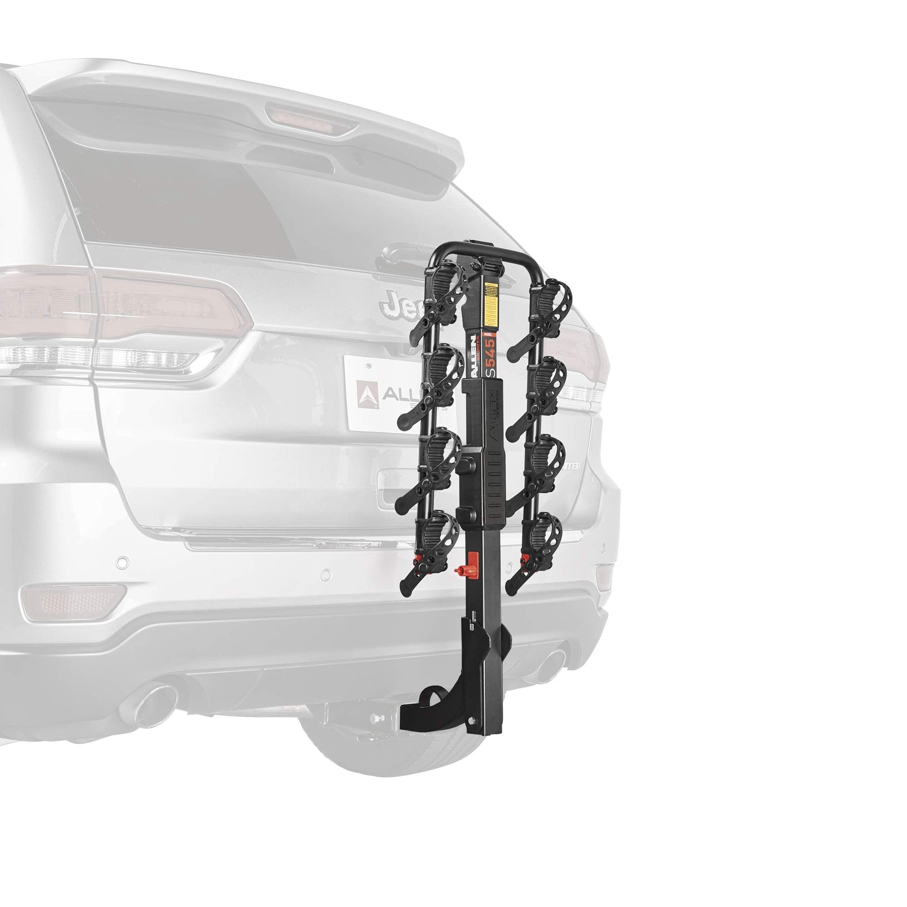 Details: Allen Sports' Premier Hitch Mounted 4 bike carrier mounts quickly and easily to your 2' trailer hitch. The arms 'snap' into place right out of the box. Allen's new dual compound cradle system securely holds your bicycles in place and the rack's large padded Spine Shield protects your bicycles as well. In addition to the easy folding arms on this rack, the new innovative internal tilt away release makes it a snap to access your vehicle's rear lift gate.
