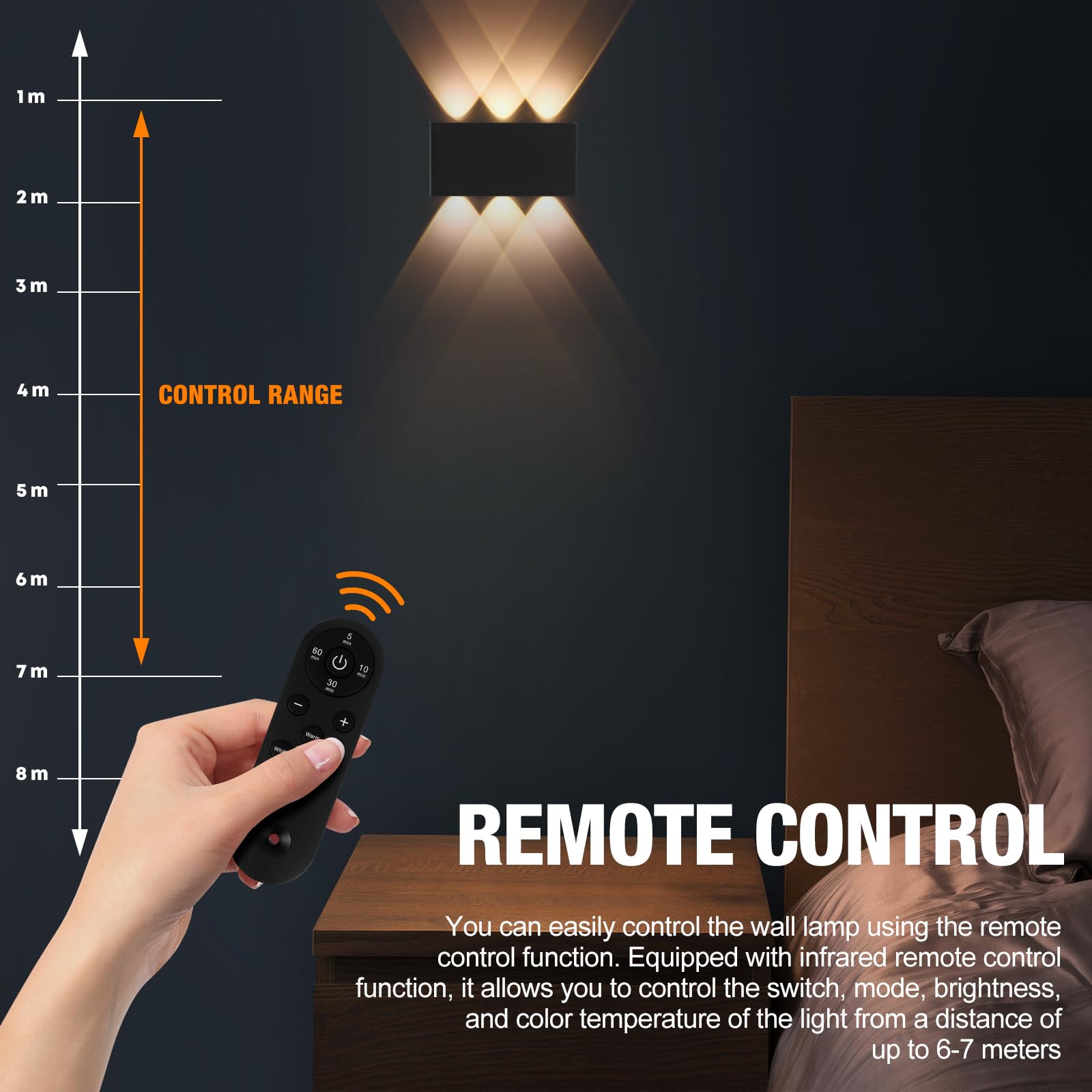 - VERSATILE LIGHTING OPTIONS, ADJUSTABLE BRIGHTNESS - Choose from 3 Color Temperatures (Warm White 2700K, Natural White 4000K, Cool White 5700K). Adjust brightness the perfect ambiance, no UV or IR radiation, protects eyes from glare or flicker. The dimmable LED wall lamp indoor is ideal for reading, studying, relaxing or sleeping