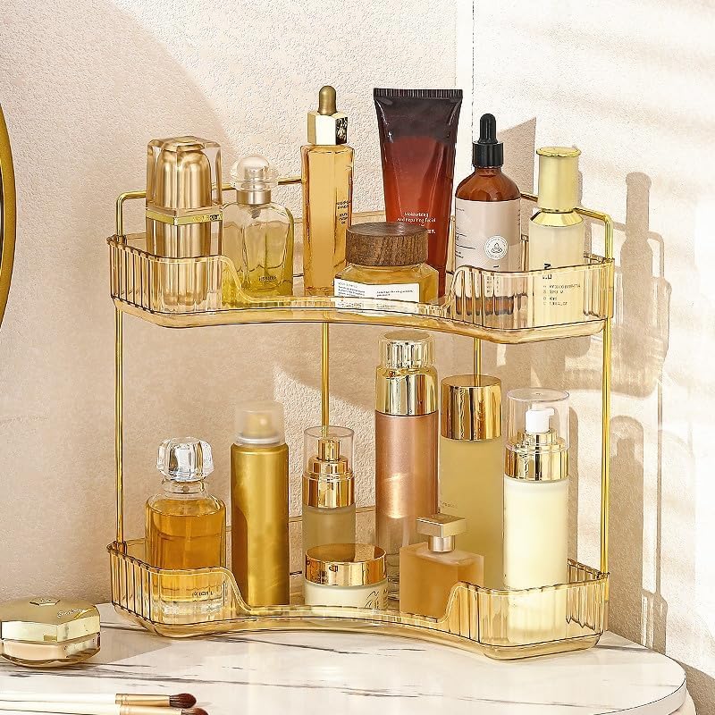 Amber 2-Tier Bathroom Counter Shelf - Vanity Organiser for Skincare, Makeup, Toiletries, Lotions, Perfumes