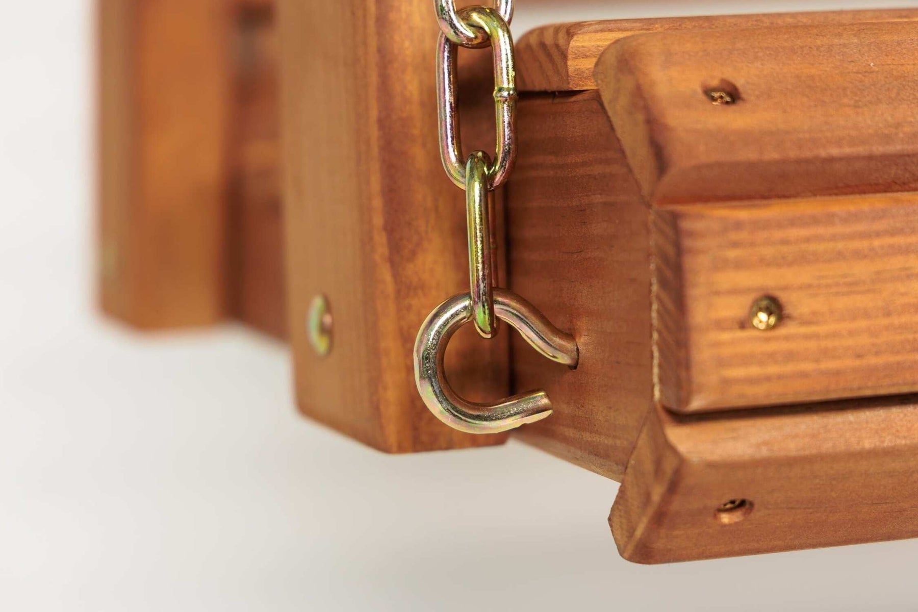 The Amish Casual Roll Back Front Porch Swing is the perfect heavy duty porch swing to bring style to your porch. Each front porch swing features a contoured back and a deep rolled seat for maximum comfort. And, Amish Casual outdoor wood porch swings are handcrafted by artisans in Pennsylvania for supreme durability. Perfect for traditional, modern farmhouse, vintage, and contemporary porch or patio designs, these hanging swings are a versatile addition to your outdoor decor. Includes standard hanging chains.