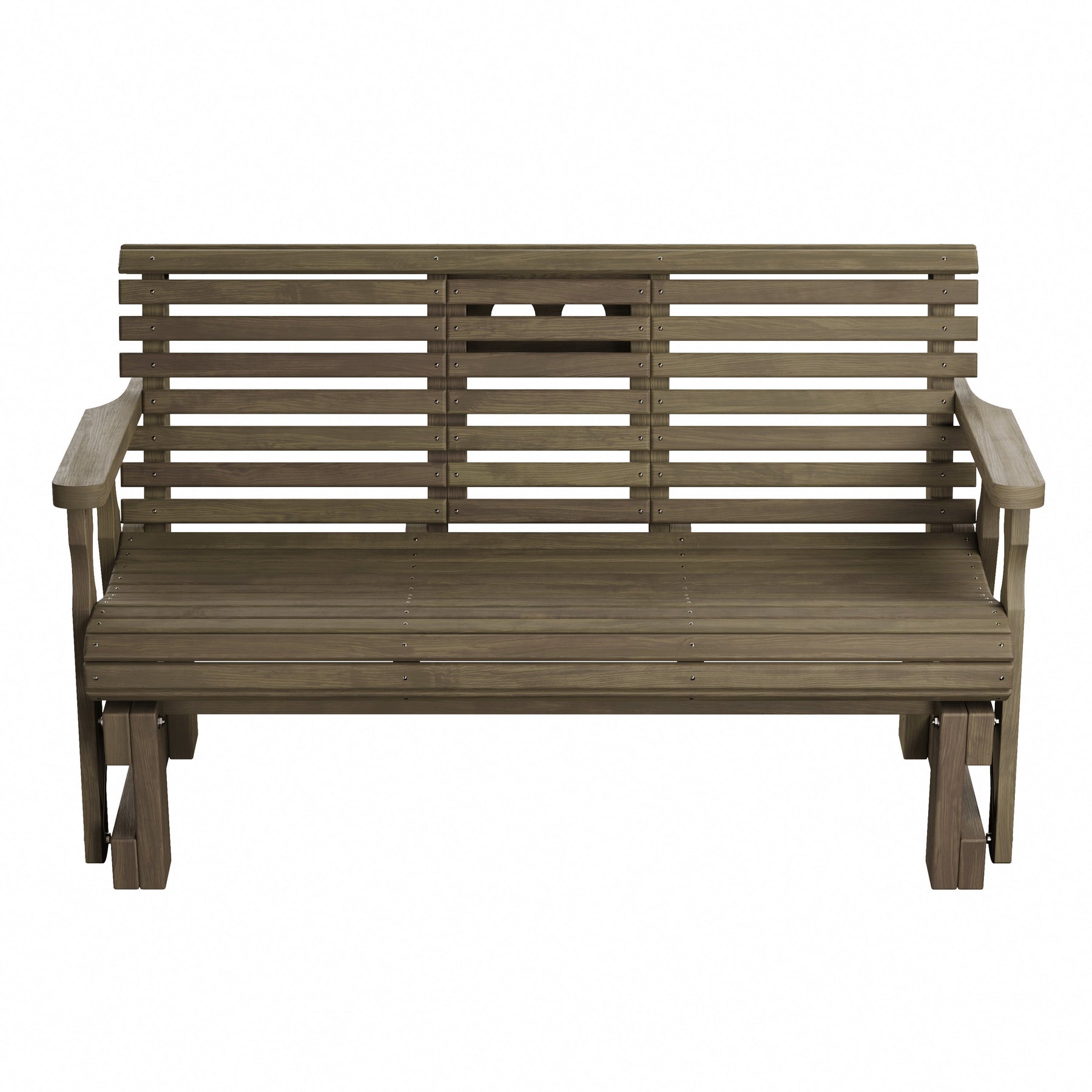 The Amish Casual Heavy Duty Rollback Console Glider by Amish Casual features a flip-down console in the middle that can hold up to two beverages. The center console can be flipped up when not in use to allow for more seating space. The Rollback Console Glider is made in the USA by skilled Amish Craftsmen.