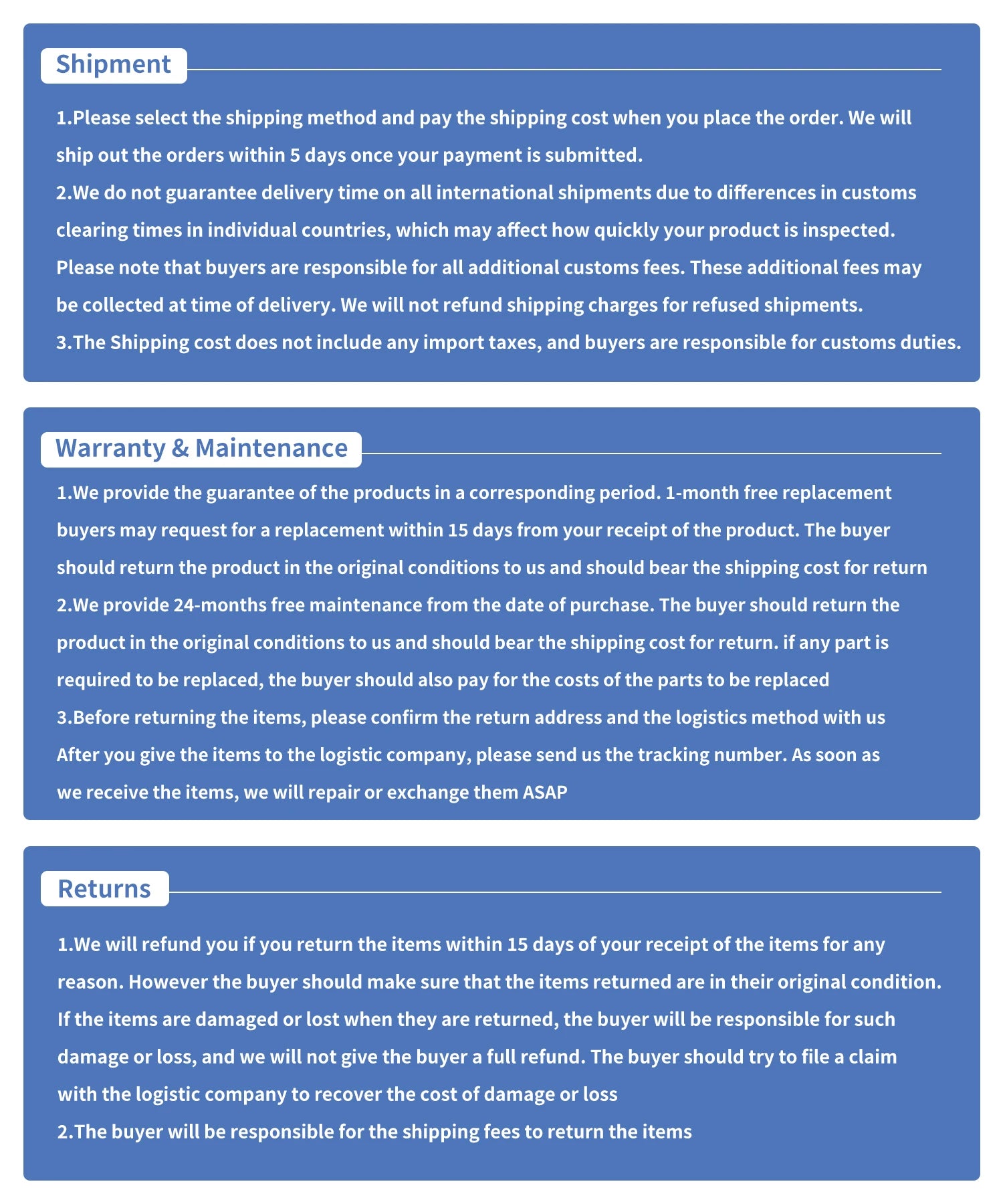 "Excellent quality and super fast delivery!"
