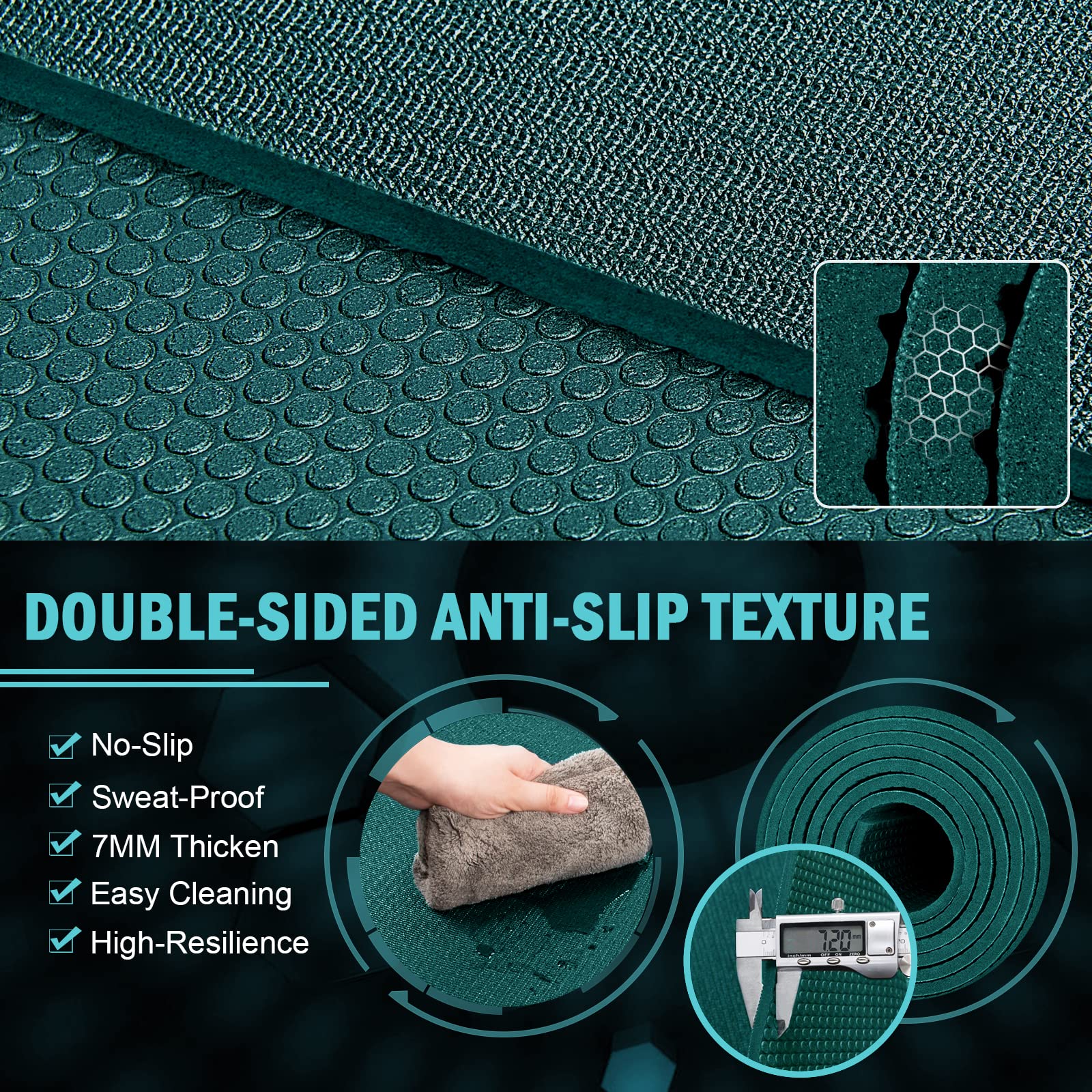 - ✅EXTRA-LARGE HOME GYM MAT COVERS 40 SQUARE FEET: The 8’x5’x7mm large fitness mat instantly transforms any space into a professional gym, giving you and your partners more than enough room to workout on without feeling cramped, and the floor mat is even shoe-friendly, whether you’re doing cardio, yoga, weightlift, dance workout including P90x, MMA, TAM, insanity, T25, Zumba, TRX, kettlebell, jumping rope or need large mats to install underneath a treadmill or weight bench, try this exercise mat.