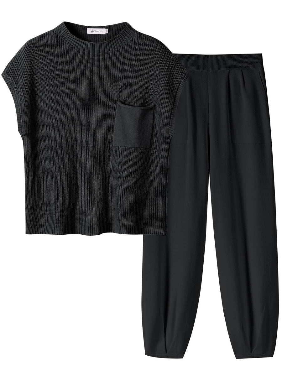 - Fashionable style - Flaunt your fashion statement with this stylish Two Piece Outfit, featuring a cap shoulder knit crop top and high waist taper knit pants for a trendy and chic look.