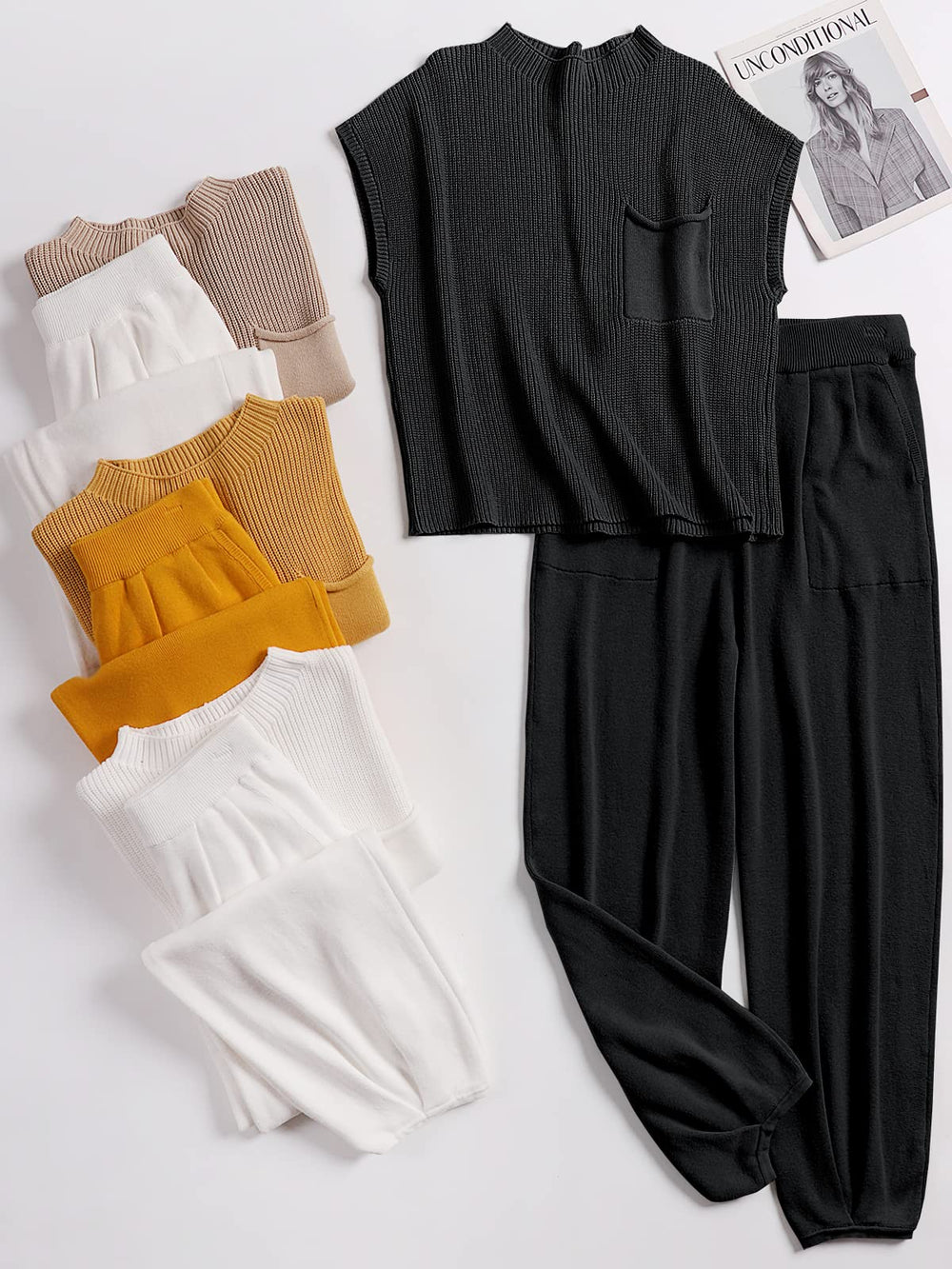 - Comfortable fabric - Made with a super-soft knit fabric, our Two Piece Outfit is the perfect choice for a cozy instant outfit, featuring a slouchy, relaxed fit with wide-leg pants.