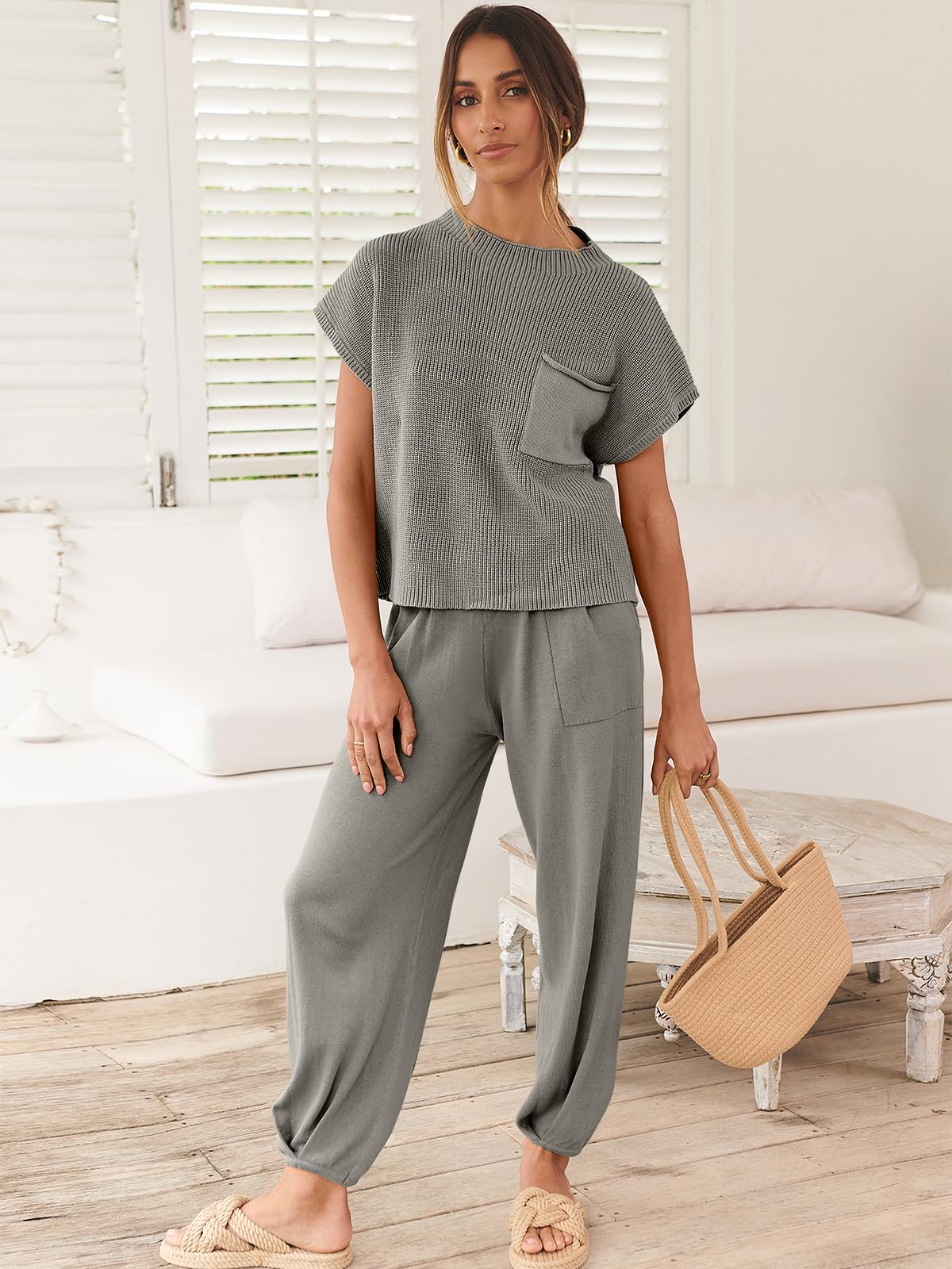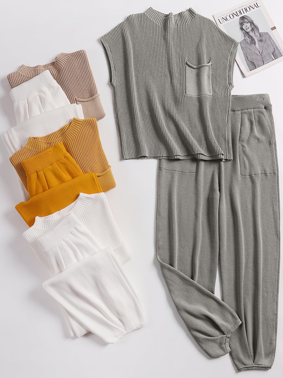• Comfortable fabric - Made with a super-soft knit fabric, our Two Piece Outfit is the perfect choice for a cozy instant outfit, featuring a slouchy, relaxed fit with wide-leg pants.