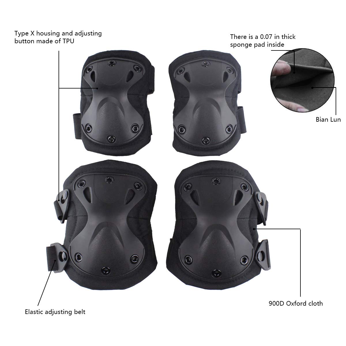 Material: Cushion is made of environmentally friendly EVA high-density foam for superior shock absorption, outer lining is made of waterproof 900D oxford cloth, shell is made of a unique X-shaped thermoplastic polyurethane (TPU).