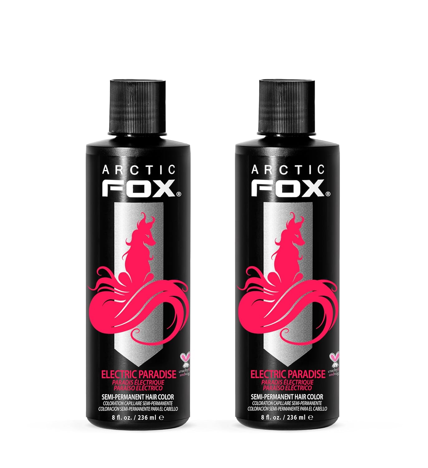 Arctic Fox was formulated to create beautiful, vibrant hair colors while minimizing the potential negative effects of semi-permanent hair dyes. Arctic Fox is made only with safe, high-quality Vegan ingredients. We are proud to say 'Made in USA.' Arctic Fox hair dyes are semi-permanent hair colors that are made only from vegan ingredients with no animal by-products. There are no harmful chemicals in Arctic Fox hair dye that damage the hair like chemical based hair colors. Made non-alkaline and peroxide free, Arctic Fox hair dyes are gentle for frequent use and actually conditions your hair as it restores vibrancy. Arctic Fox Hair Colors are 100% Vegan, No animal by-products, EXTRA Conditioning, No Peroxide, No Ammonia, No Ethyl Alcohol, No PPD and does not contain heavy chemicals that damages hair.