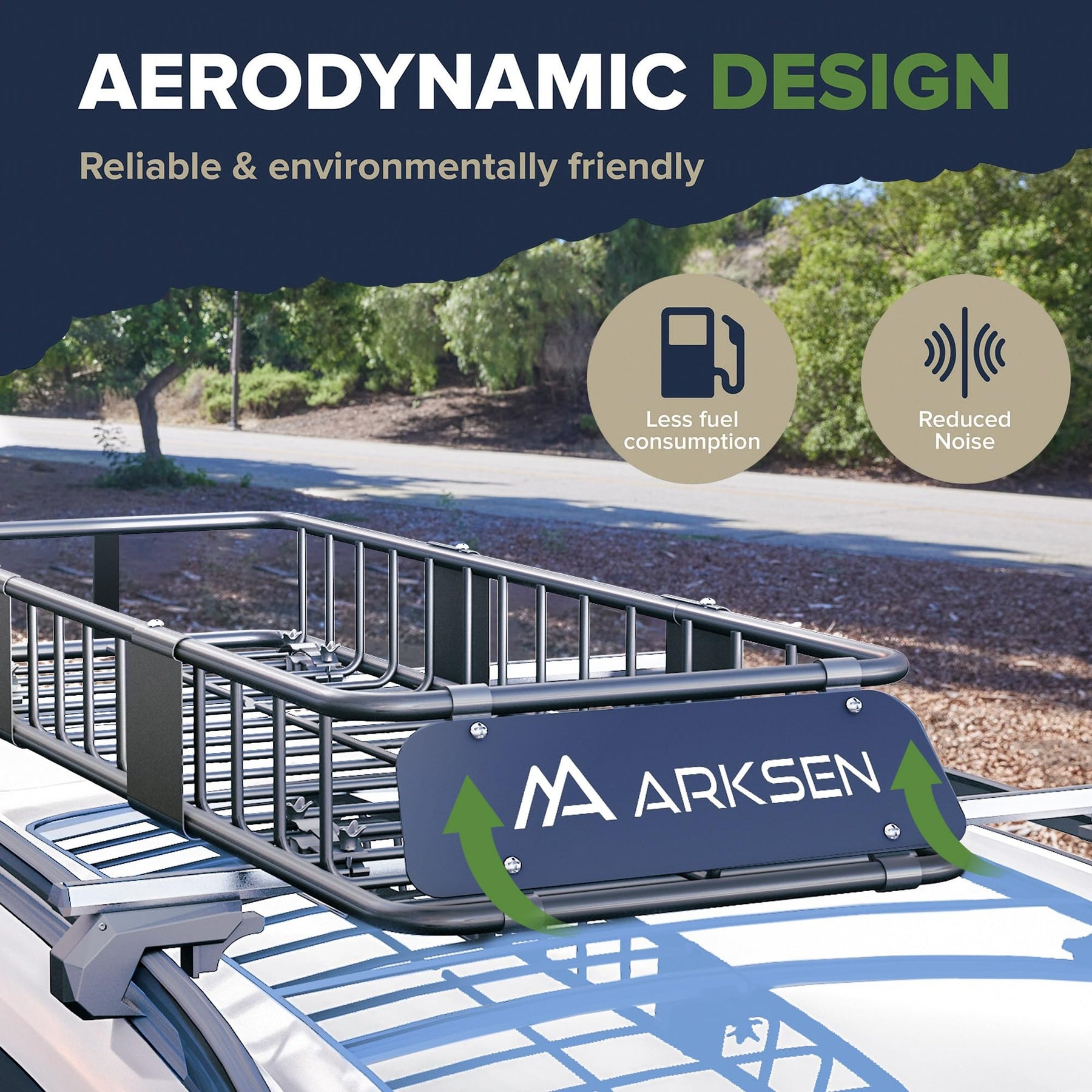 ARKSEN Roof Rack Skinny Cargo Carrier with Basket & Net, Heavy Duty Weather Resistant Top Mount Cargo Rack, Luggage & Camping Gear Storage for Car, Truck or SUV Transport