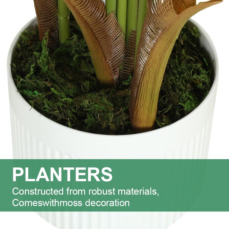 - 【Sturdy and Secure】Forget about instability – this artificial palm tree comes securely anchored in a robust pot filled with solid cement. The sturdy base ensures that the tree remains upright and firm, even in busy areas or windy outdoor conditions, making it a safe choice for households with pets and children.
