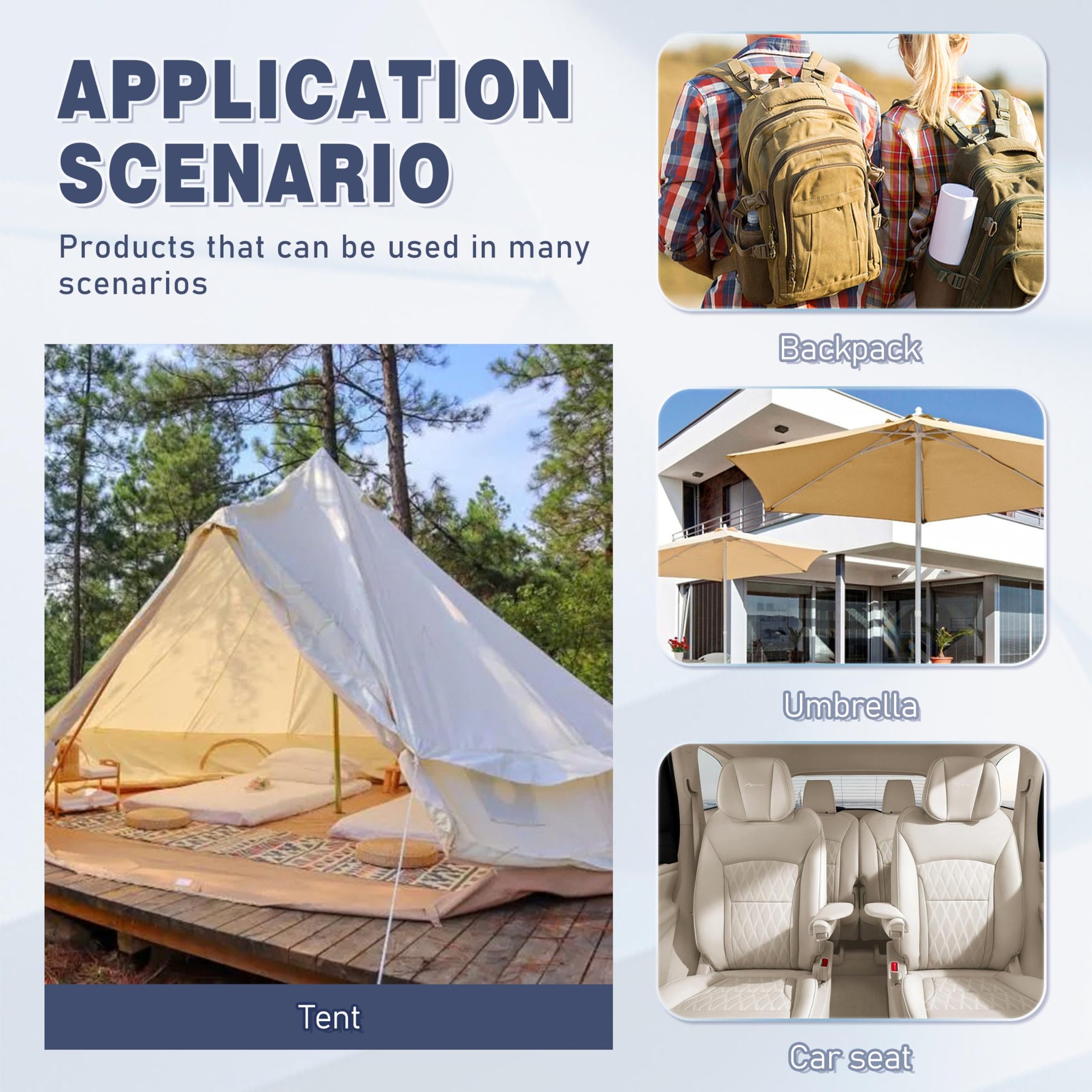 - [Applicable scenarios]: The canvas repair kit is suitable for repairing various outdoor equipment such as tents, sunshades, awnings, sails, canopy,sofas.The fabric patch can easily refurbish and repair various damages, eliminating the need to purchase new furniture or outdoor gear.