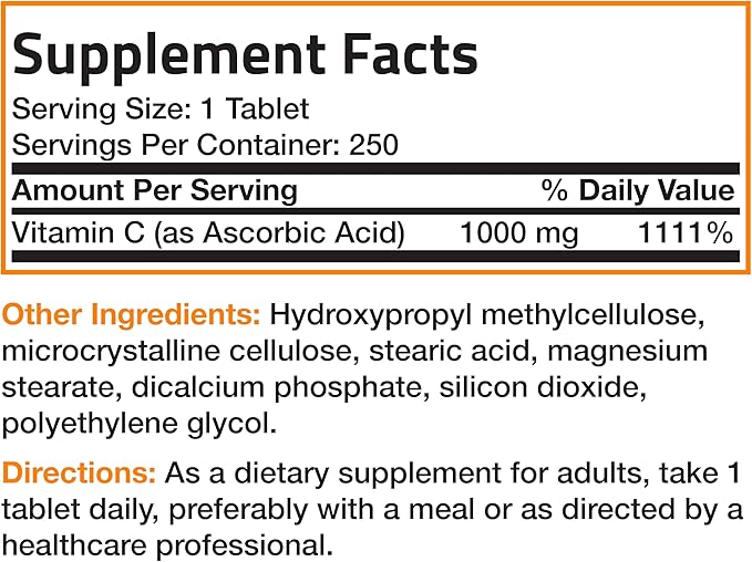 Bronson Vitamin C 1000 mg Sustained Release Premium Non-GMO Ascorbic Acid, 250 Tablets