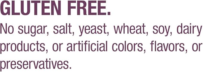 • Gluten-free. No wheat, soy, dairy, gelatin, or artificial colors or flavors.
