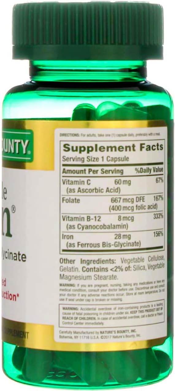 • CONVENIENT CAPSULE FORM: Easy to swallow and incorporate into your daily routine, allowing for consistent iron supplementation without any hassle